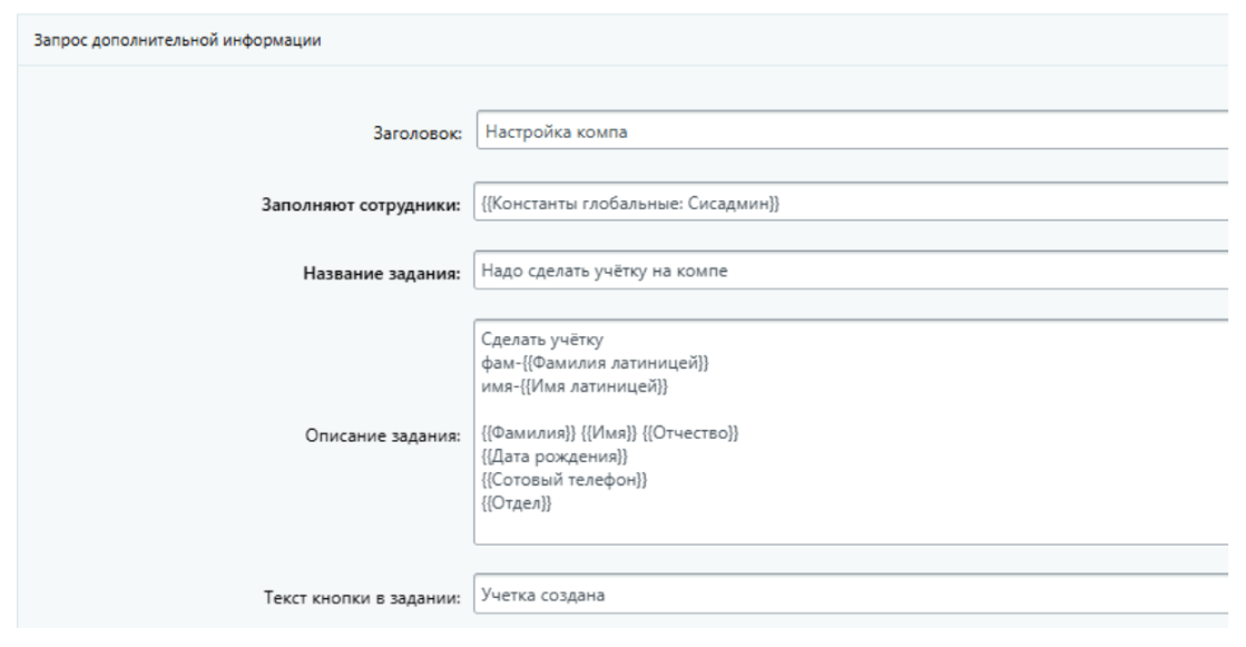 Преимущество этапа: логины и пароли не “гуляют” по перепискам, а собираются централизованно в рамках бизнес-процесса.