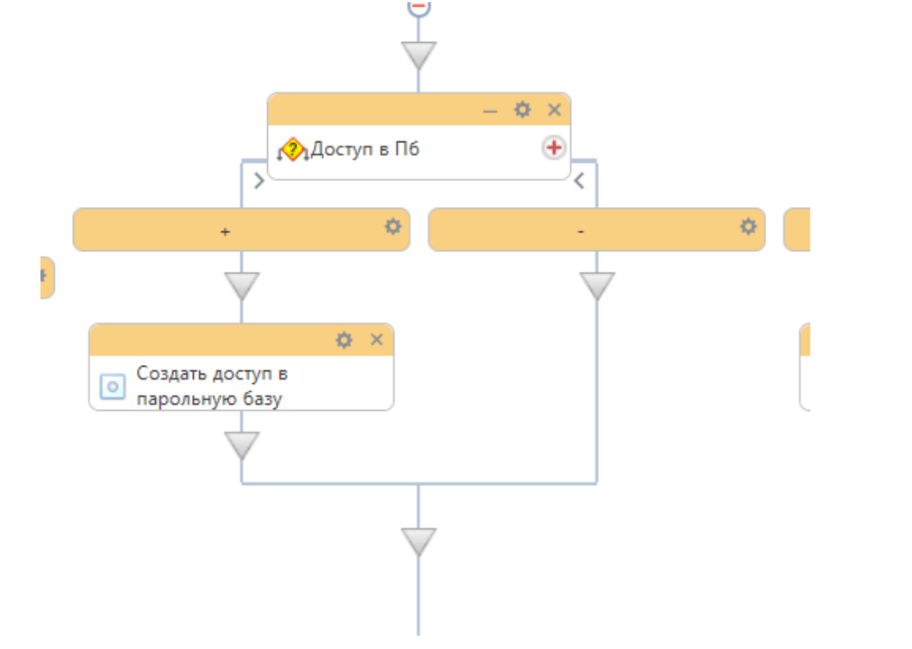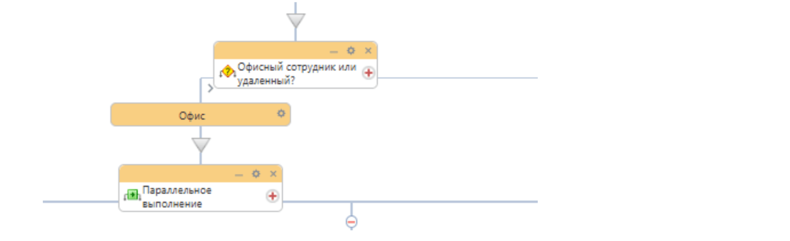 В офисной ветке используется параллельная логика. Это значит, что несколько задач могут идти одновременно: проверка компьютера, работа с доступом в парольную базу и другие проверки. Для Bitrix24 это очень правильный прием: последовательные и параллельные задания поддерживаются в карточке и протоколе процесса.