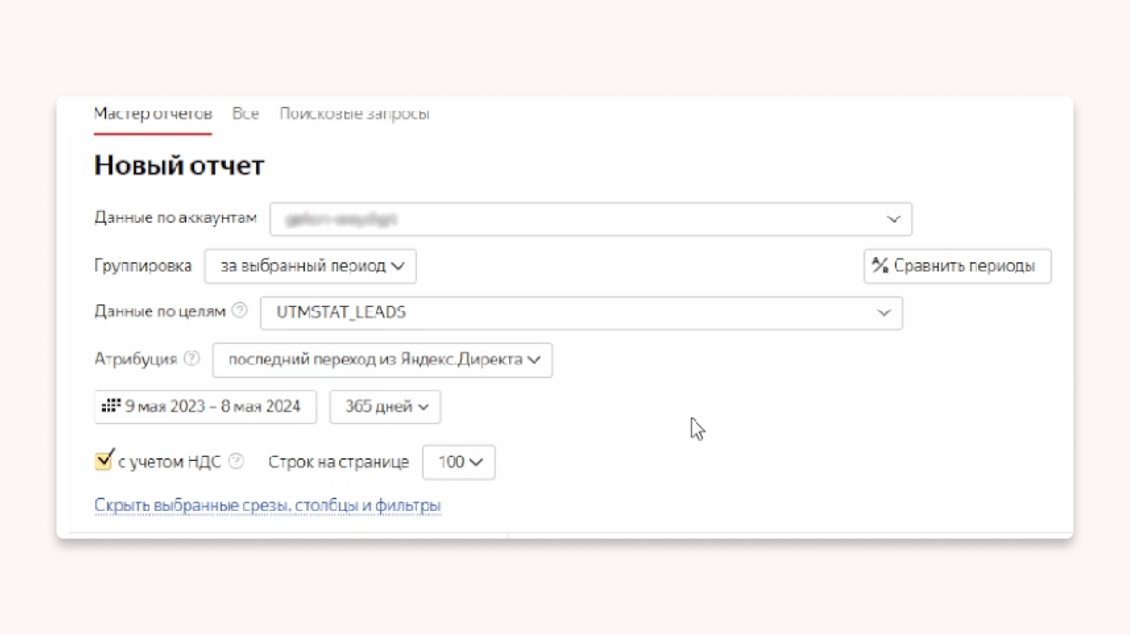 Заходим в Яндекс Директ -> Мастер отчётов.