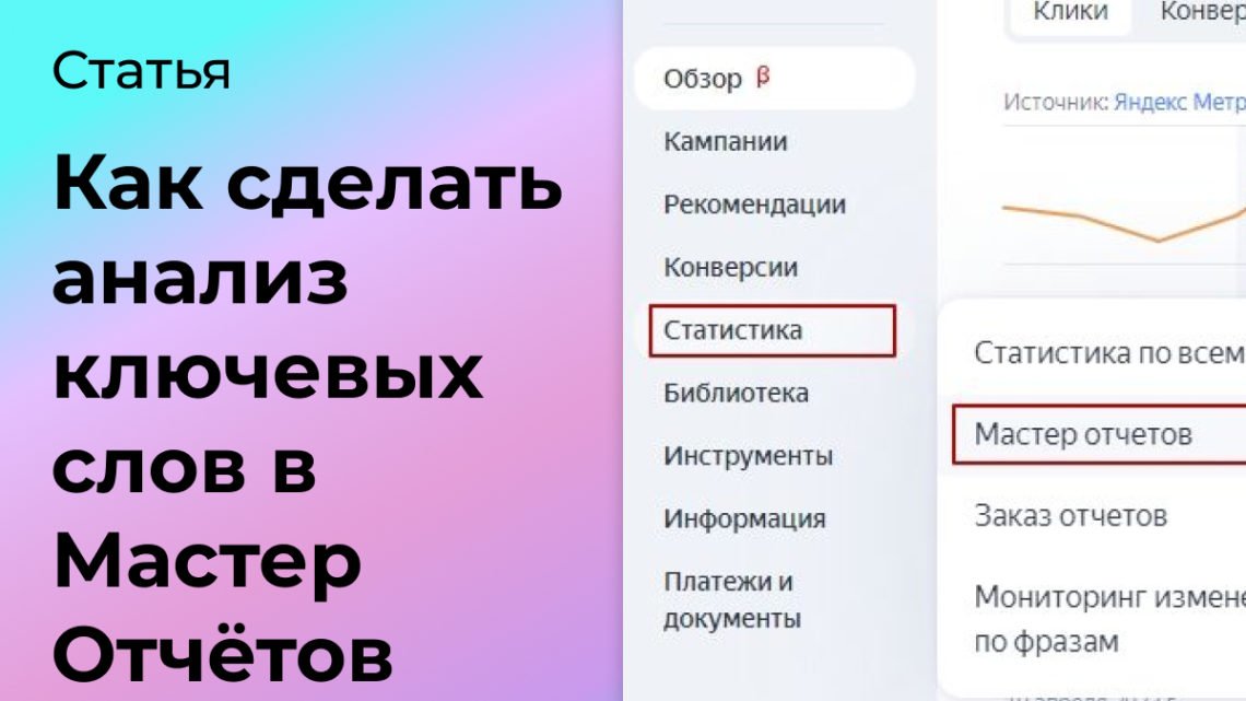 В статье расскажу, как делать анализ ключевых слов в Яндекс Директ через Мастер Отчётов.