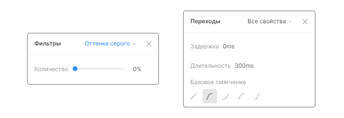 Если у элемента будет несколько эффектов, можно сделать отдельные настройки перехода для каждого из них или настроить единый паттерн для всех вариантов.