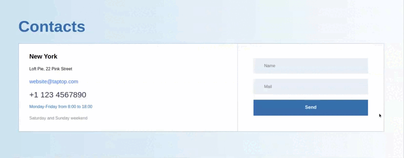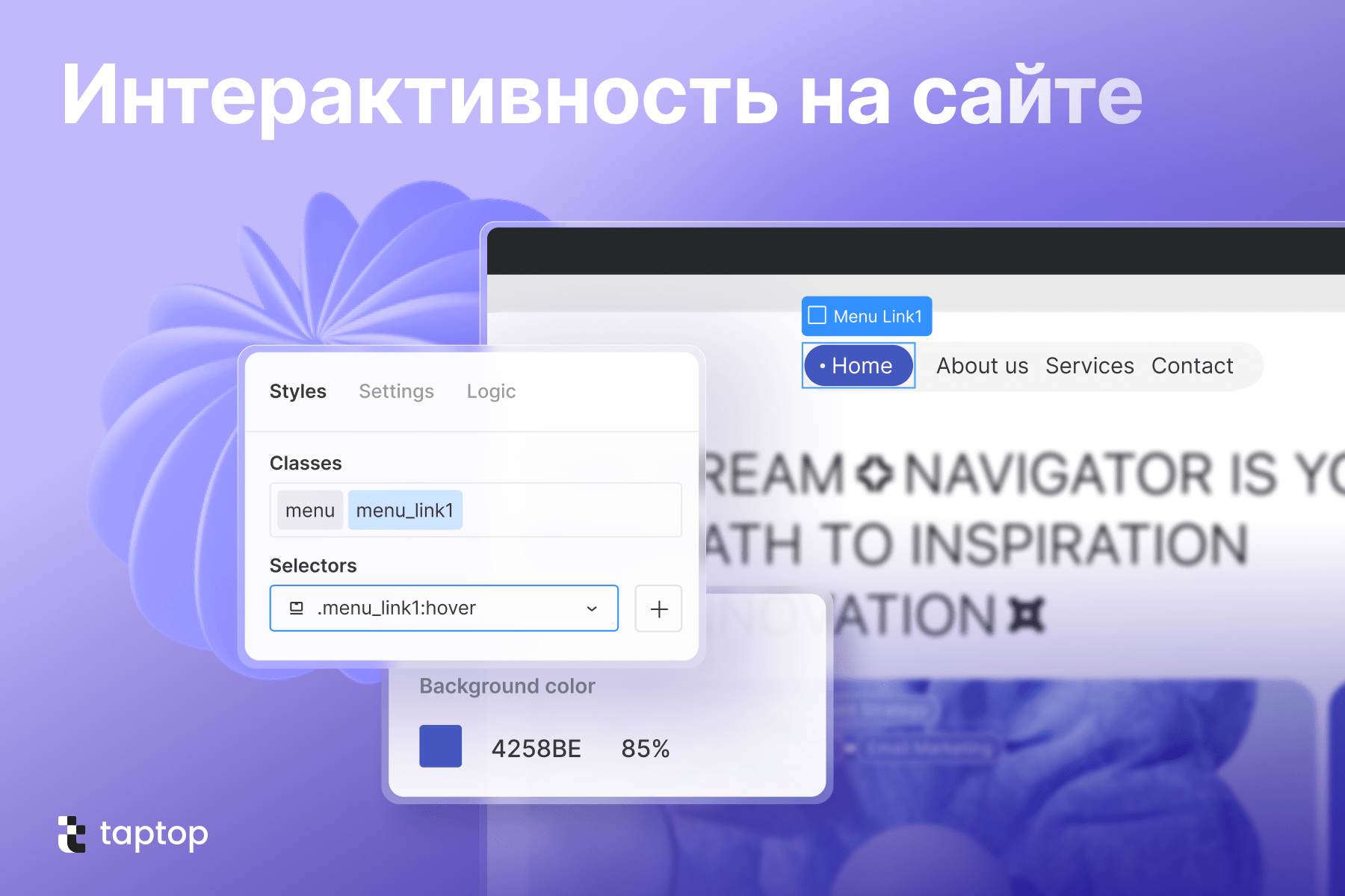 Платформа Taptop дает больше возможностей, чем стандартные конструкторы сайтов, потому что использует подход, основанный на профессиональной верстке. Настраивая интерактивные эффекты через состояния элементов, вы можете напрямую использовать все возможности CSS-стилей и менять любые параметры для создания оригинальных микро-анимаций.