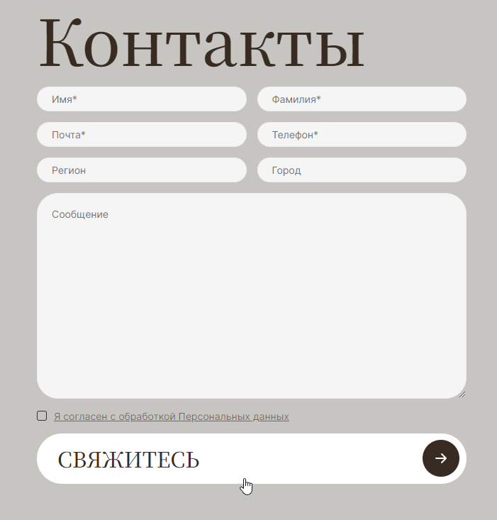 У полей формы в состоянии фокуса (при клике или переходе по клавише Tab) цвет фона будет меняться на белый и появится граница снизу. Этот эффект послужит визуальной подсказкой пользователю, что поле формы готово для ввода текста.