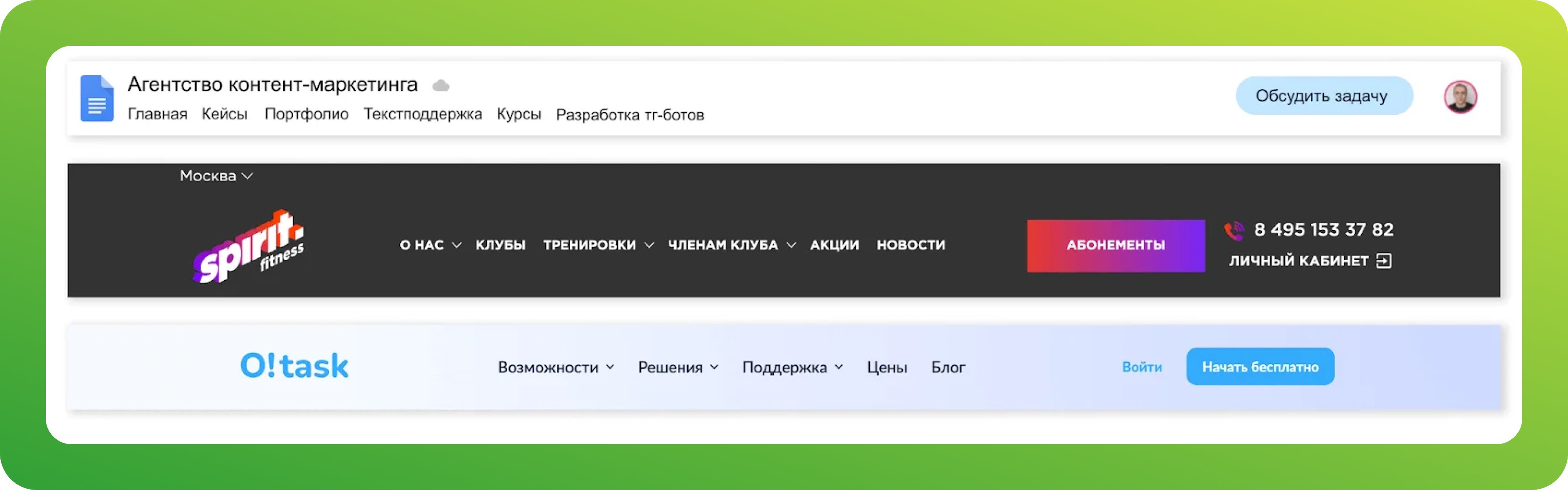 «Мы знаем, что наша целевая аудитория привыкла решать все рабочие вопросы в Телеграме, поэтому на первом скриншоте с примерами нет номера телефона или почты. Есть только форма обратной связи, которую клиент может заполнить, чтобы я связался с ним через мессенджер».Климент Лысенко, руководитель редакторского агентства «Климент Контент»