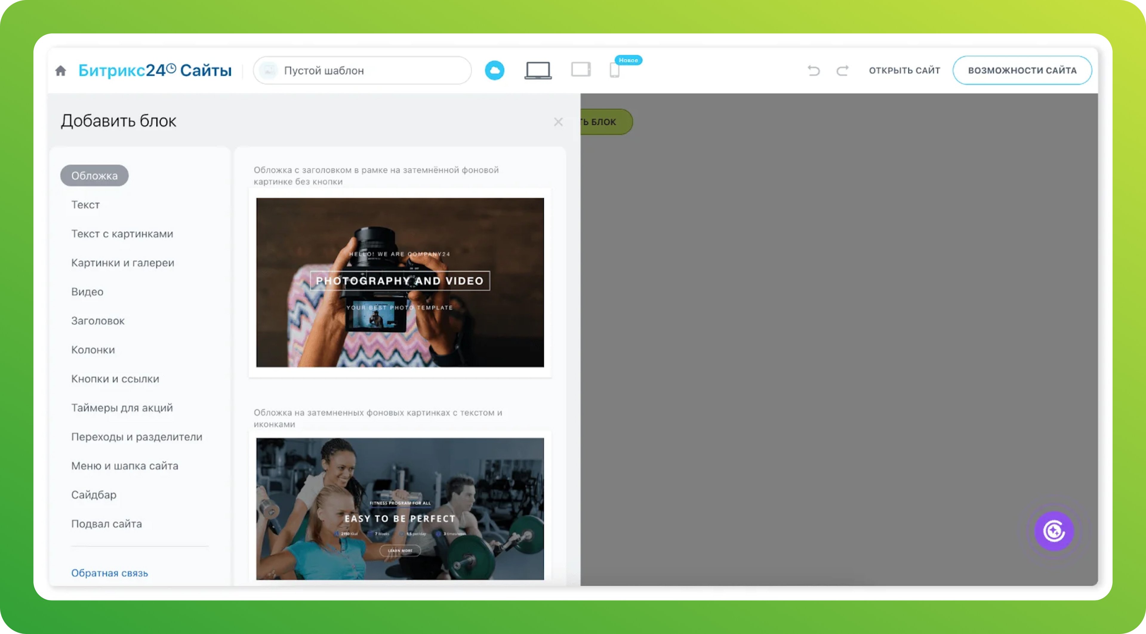 На нейросетях работают все конструкторы банков, про которые мы рассказывали выше. Полностью автоматизированное решение есть у Битрикс24: пользователю достаточно ответить на несколько вопросов, а система сама оформит шаблон, сгенерирует картинки и текст и сформирует черновик лендинга.