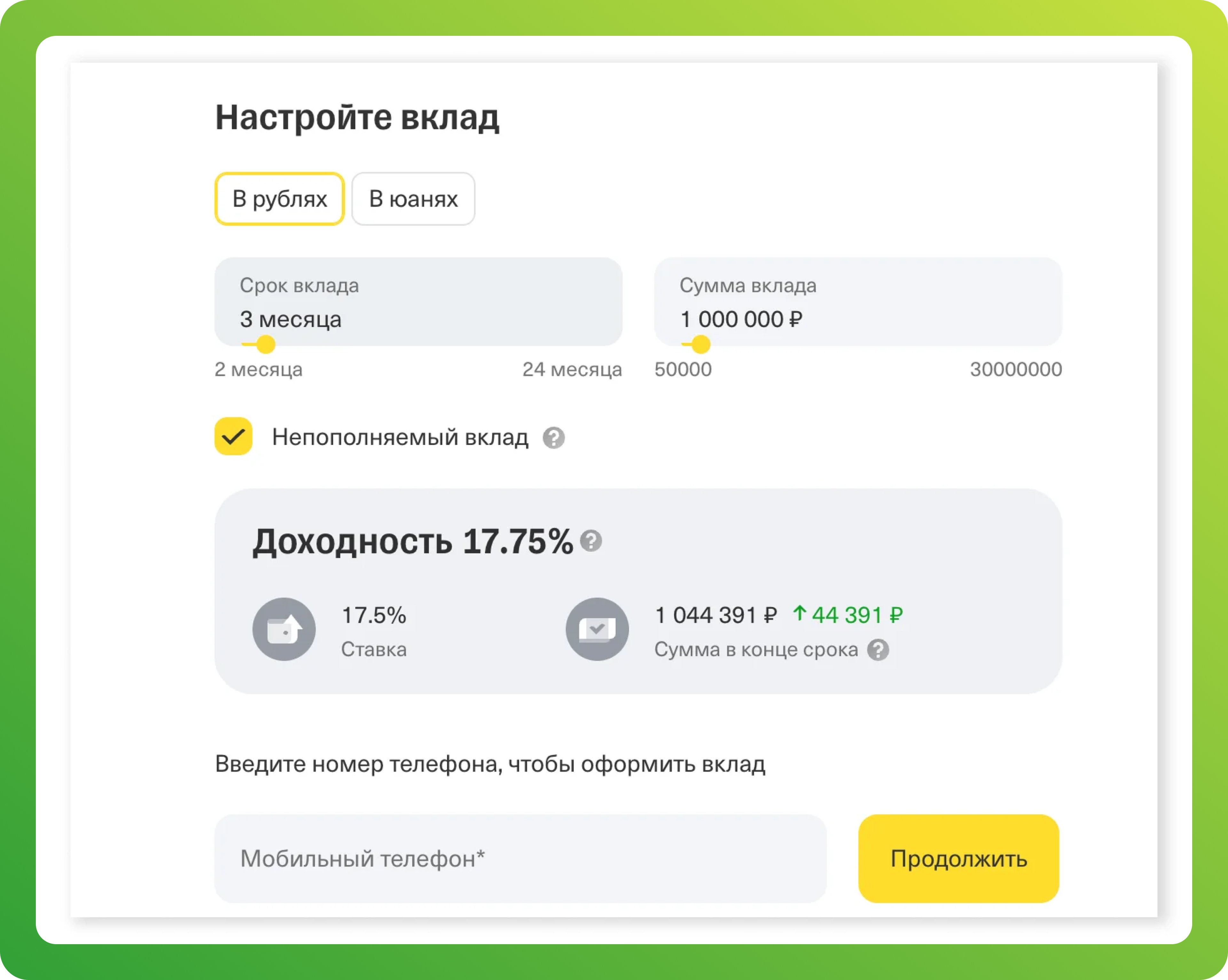 «Т-банк» на своём лендинге предлагает настроить вклад и подвигать несколько ползунков