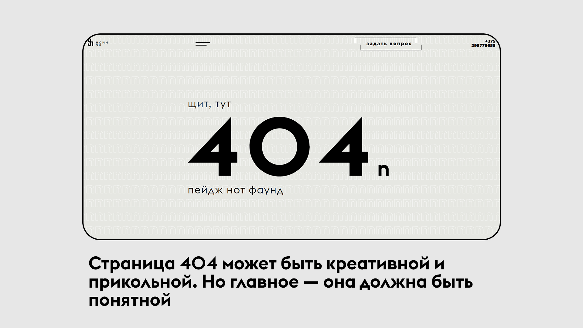 Если человек попал на несуществующую страницу, он должен увидеть не просто надпись «404 Not Found», а понятное сообщение с предложением перейти в нужный раздел.