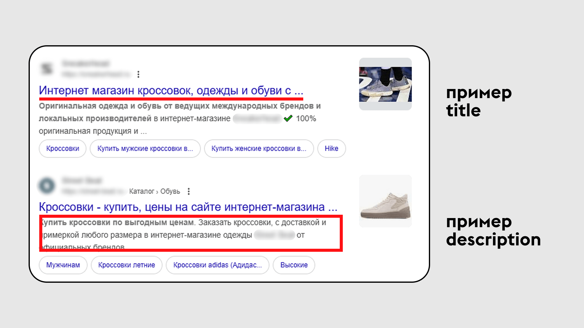 Как правильно? Title должен быть коротким (50-60 символов), содержать ключевые слова и нести в себе смысл. Если это интернет-магазин кроссовок, не стоит писать «Главная» или «Магазин обуви». Лучше что-то вроде: «Кроссовки Nike и Adidas — скидки до 50%». Описание (Description) — это 160 символов продающего текста, который дает понять, что именно найдет пользователь.