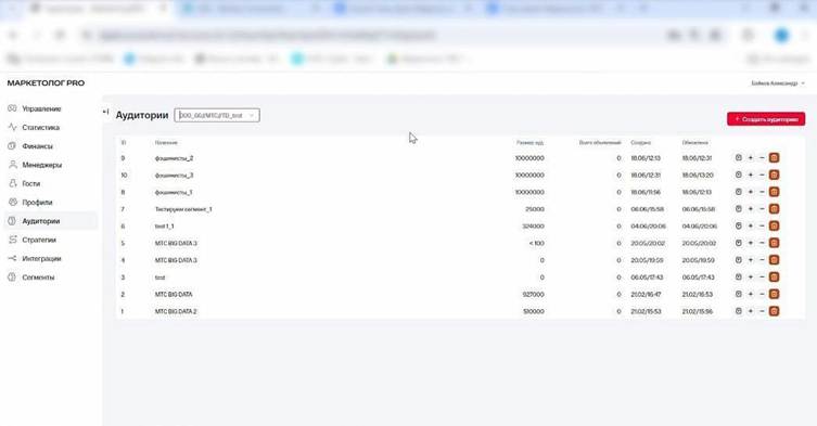 ❖ Через вкладку Аудитории загрузить собственную базу или использовать data-пулы, доступные в сервисе. Аудитории можно дополнять новыми номерами телефонов или удалять лишние.