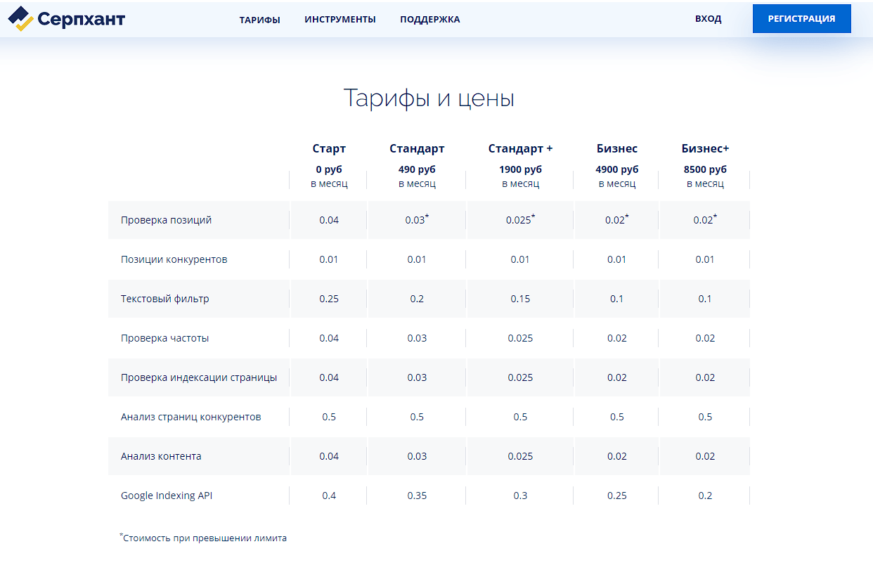 Сервис предлагает анализ позиций сайта в поисковиках и управление проектами SEO. Каждый зарегистрированный пользователь получает тариф "Старт", который предоставляет 500 бесплатных проверок ежемесячно. Сервис Serphunt позволяет добавлять проекты, указывать ключевые слова, выбирать поисковики и отслеживать позиции в выдаче.