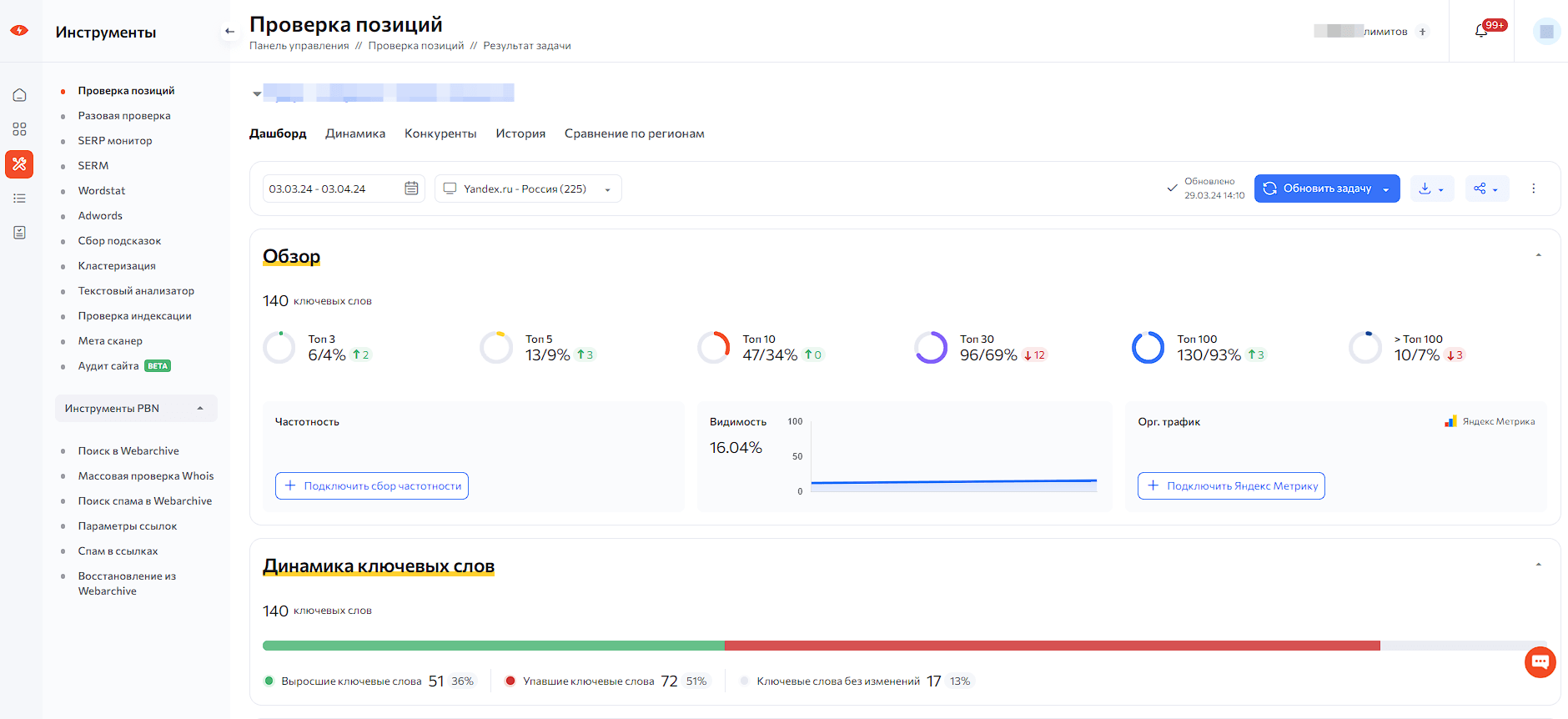 SE Ranking предоставляет возможности для анализа позиций сайта в поисковых системах, отслеживания изменений в выдаче, а также мониторинга конкурентов.