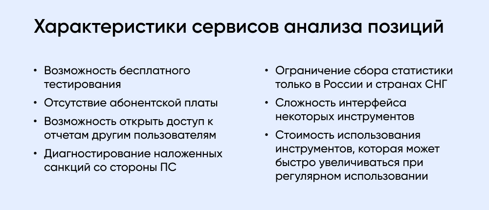 Минусы: ограничение сбора статистики только в России и странах СНГ; сложность интерфейса некоторых инструментов; стоимость использования инструментов, которая может быстро увеличиваться при регулярном использовании.