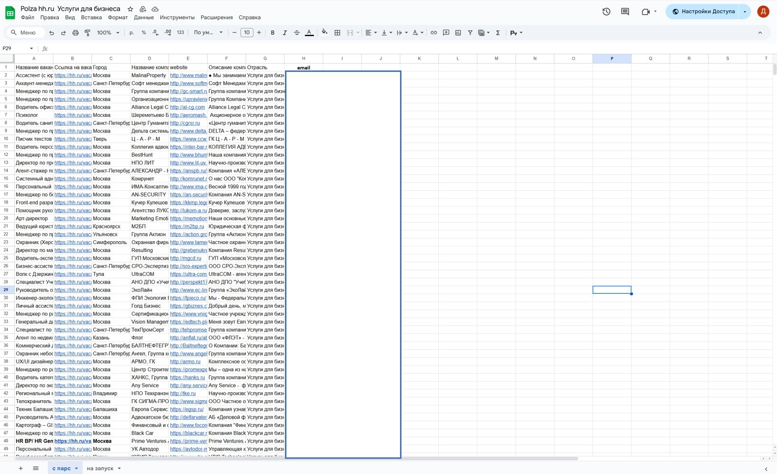 До очистки база — это «каша» из компаний: с дублями, нерелевантными сайтами (Instagram, Telegram), неподходящими отраслями.