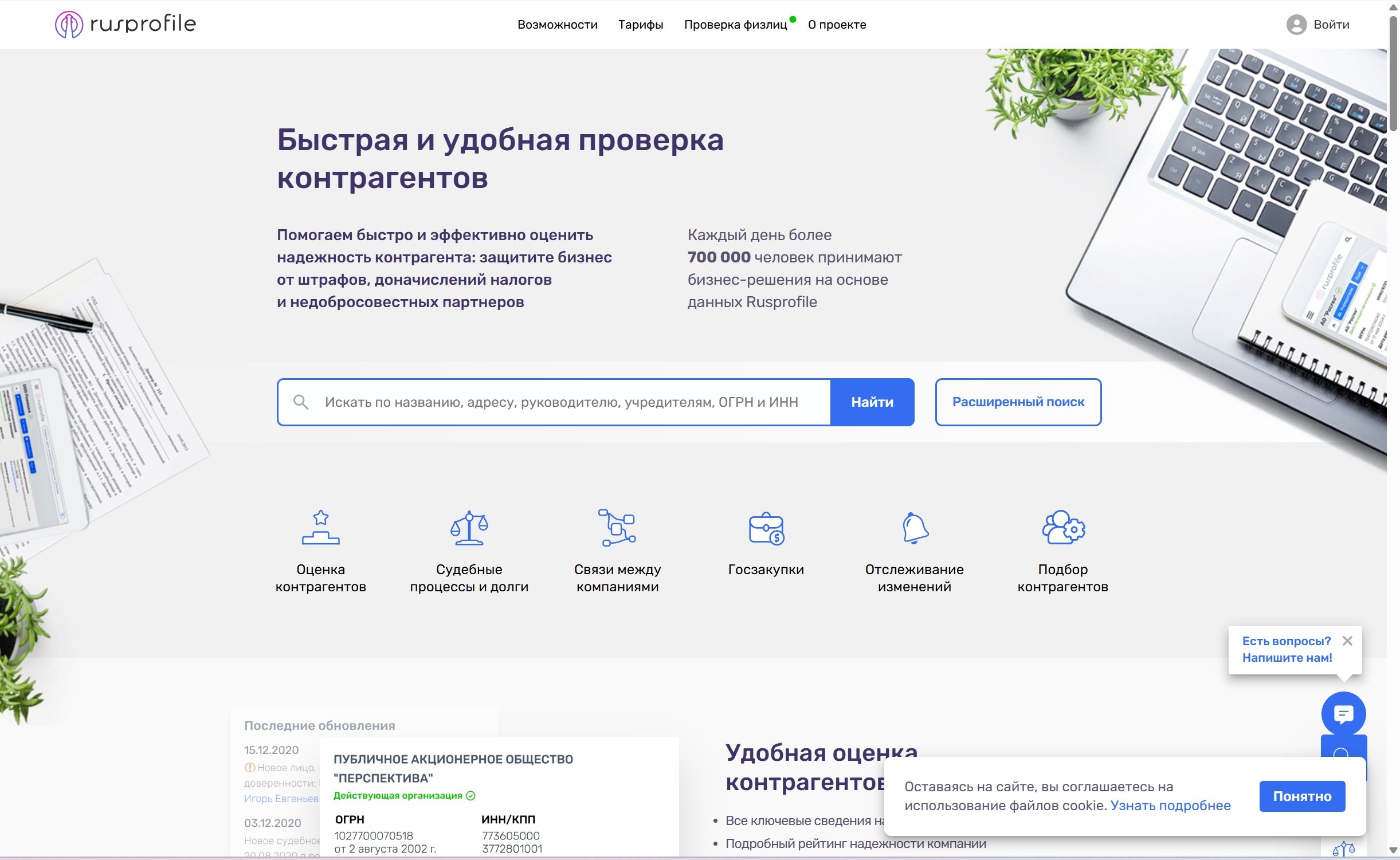 или Rusprofile - это крупнейшая онлайн-база данных по юридическим лицам и индивидуальным предпринимателям России.