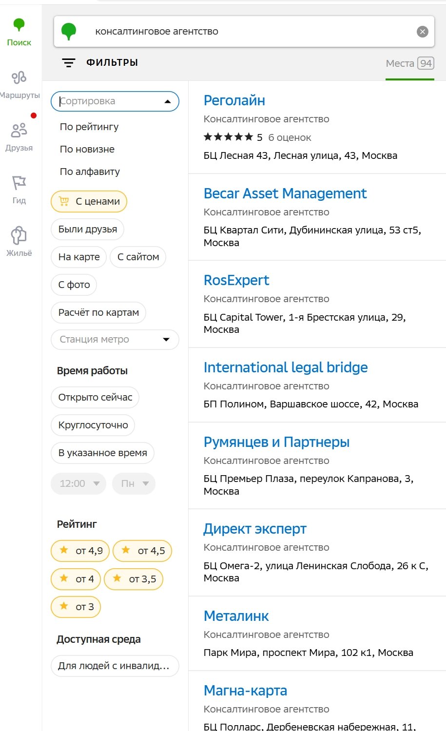 Сервис предоставляет удобный и мощный инструмент для поиска и анализа компаний по широкому спектру параметров. С его помощью можно быстро формировать целевые списки контактов, используя множество фильтров: