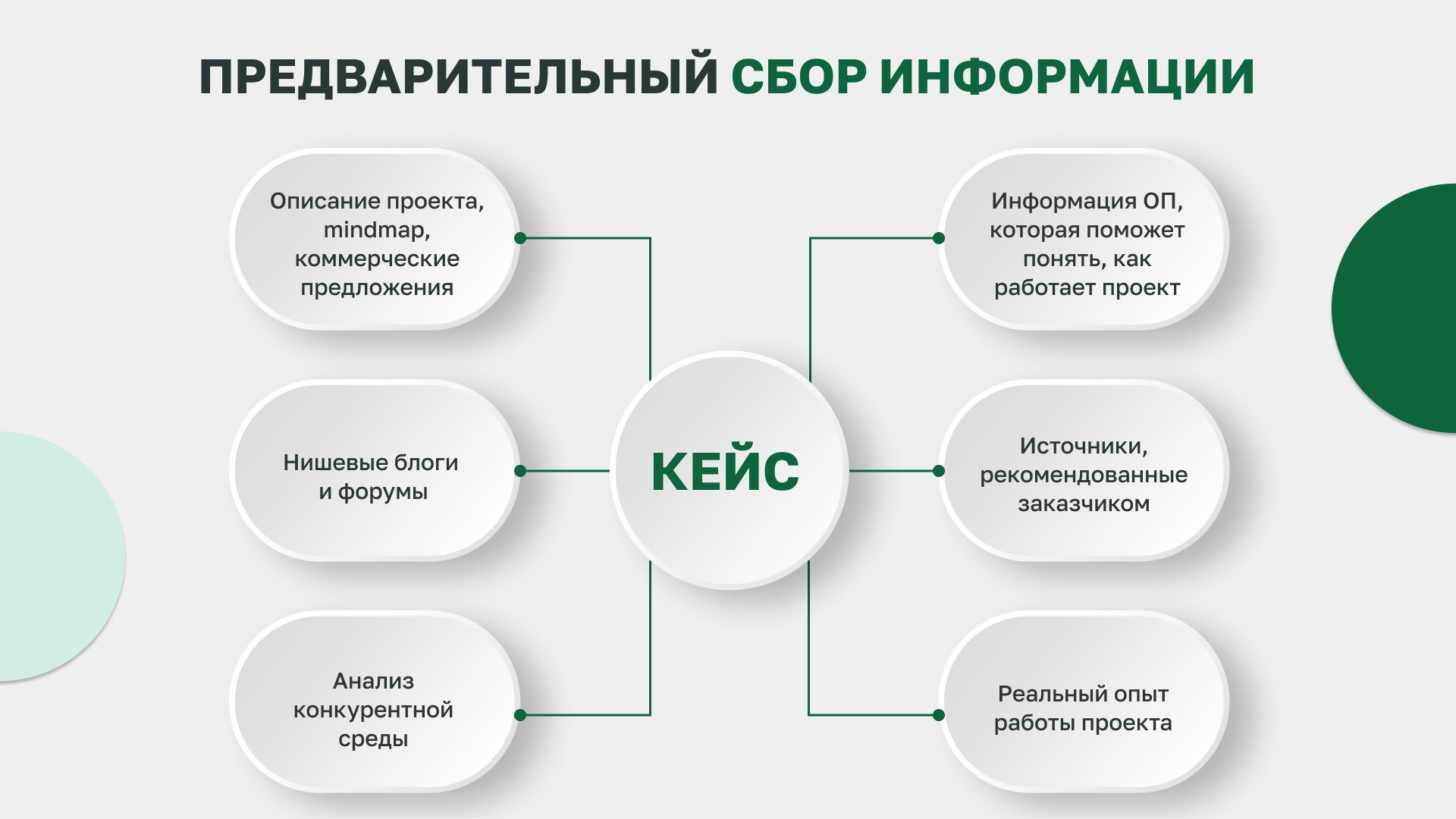 До интервью с ЛПР компании-заказчика нужно собрать предварительную фактуру. Это как минимум mindmap или другое описание проекта, о котором будет кейс и коммерческие предложения по проекту. Если есть скрипты для продавцов, информация по возможным возражениям покупателей — она тоже будет не лишней. Всё это поможет понять, как именно работал (или до сих пор работает) проект, как он решает проблемы клиентов компании.
