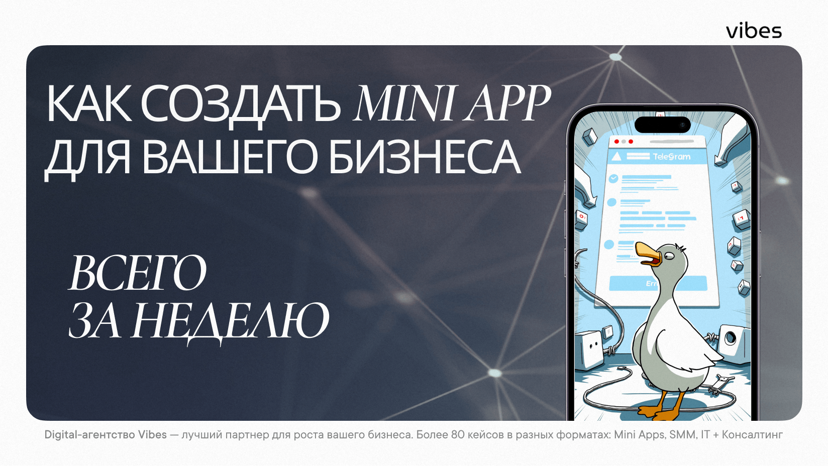 📢 Получите бесплатную консультацию – расскажем, как создать Mini App за неделю и интегрировать его в ваш бизнес. Свяжитесь с нами @vibes_manager в Telegram.