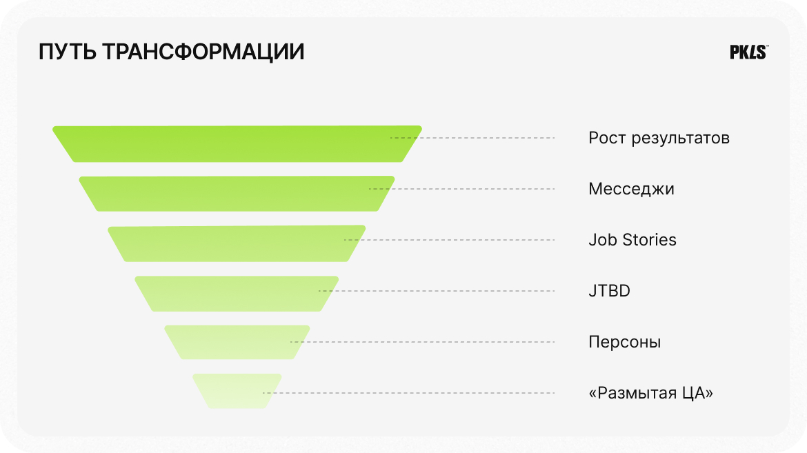 Персоны помогают описать типажи, но JTBD показывает логику выбора. Мы не просто смотрели, кто клиент — мы фиксировали «работу», которую он хочет сделать.