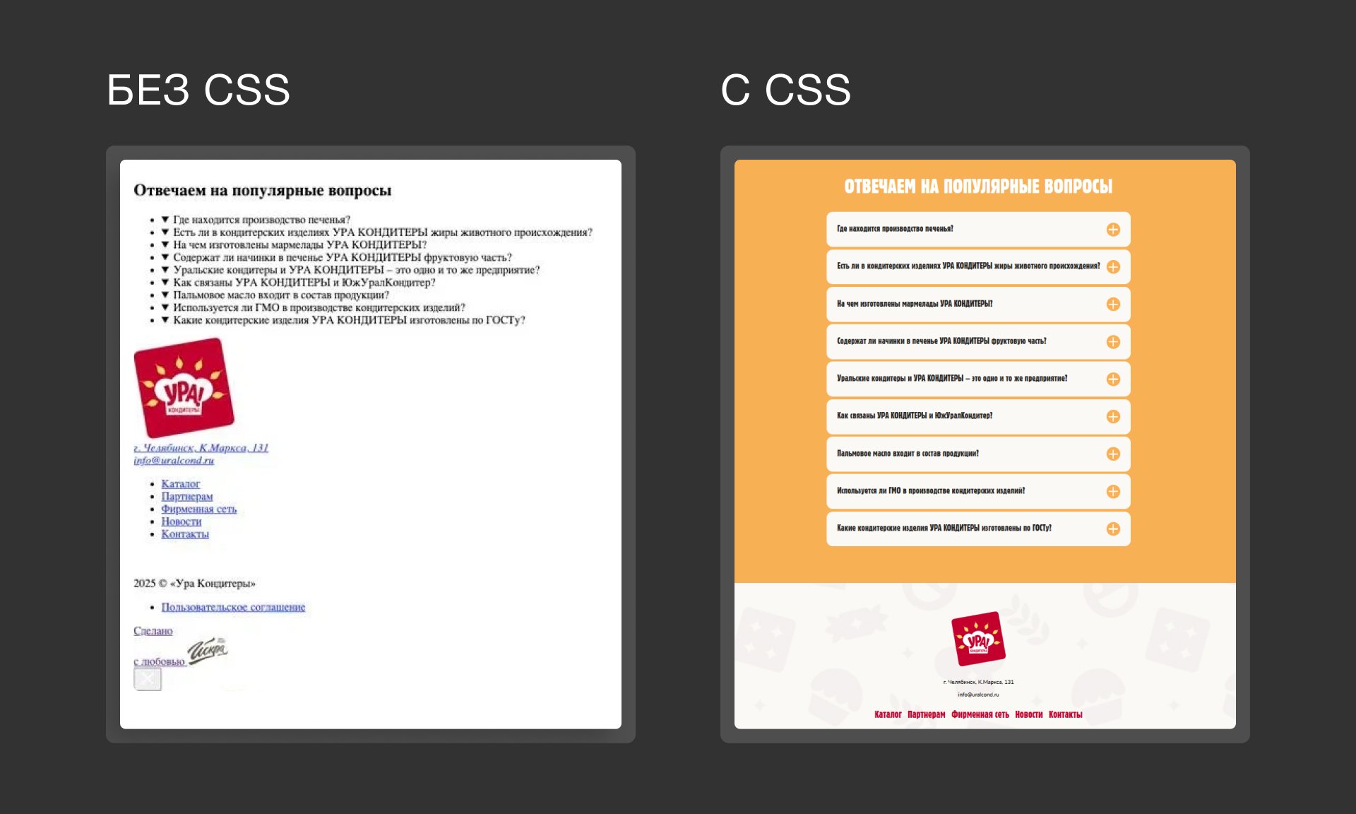 CSS позволяет вынести инструкции для одинаковых элементов на всех страницах сайта в один файл, ссылка на который ставится в основной файл с html. Благодаря этому, чтобы, например, изменить цвет кнопки на всех страницах, разработчику достаточно открыть файл с CSS, найти нужную строчку и обновить ее значение.