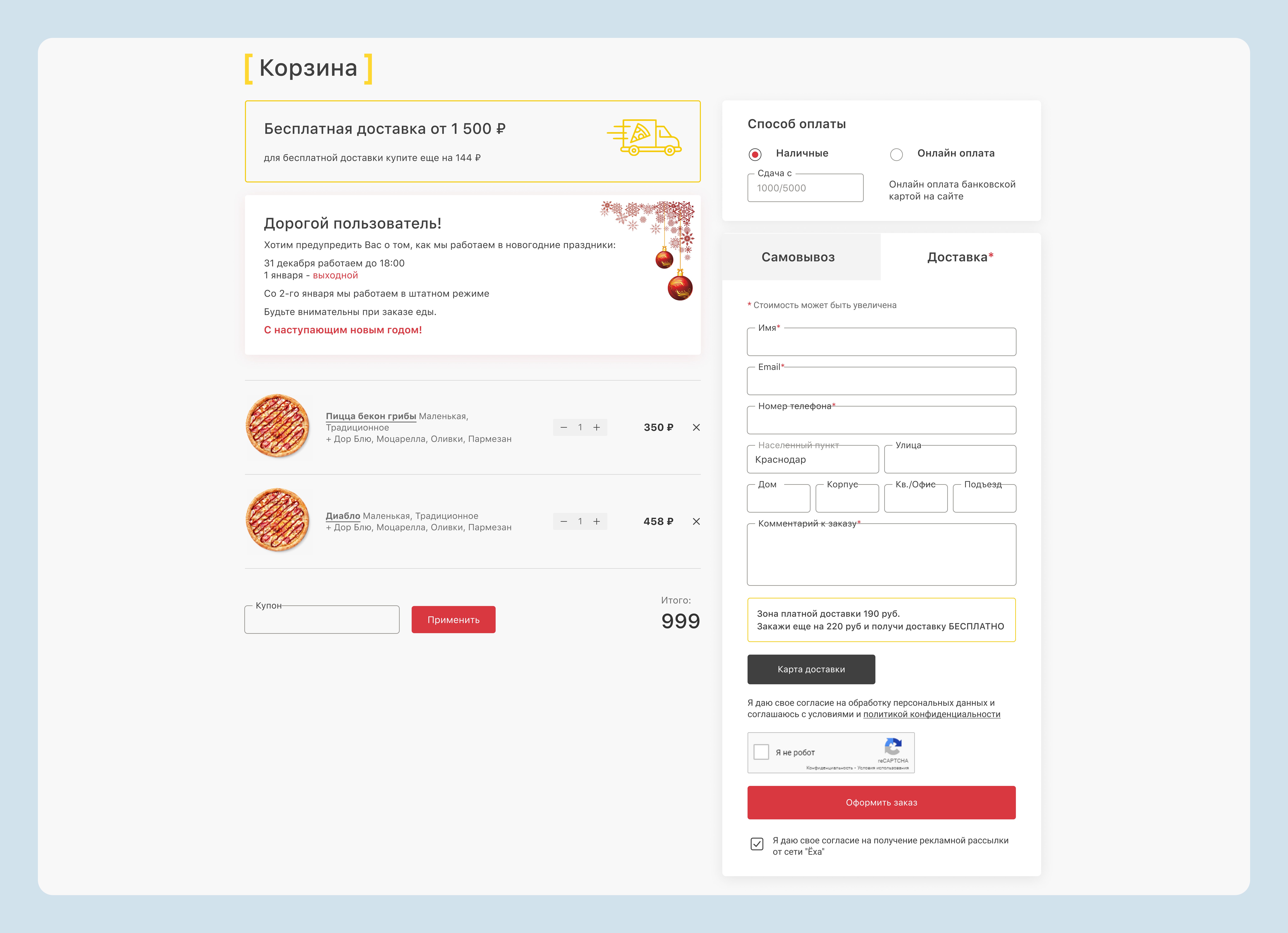 Пример: Кнопка удобно находится внизу формы, что делает её частью концепции и остаётся заметной для пользователя