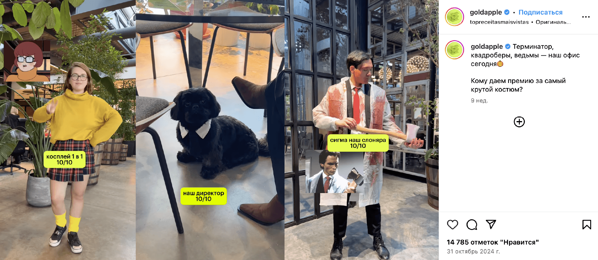 Хорошим примером успешного ситуативного маркетинга стал ролик российского бренда «Золотое яблоко», посвященный Хэллоуину. В нем были задействованы сразу несколько популярных трендов: