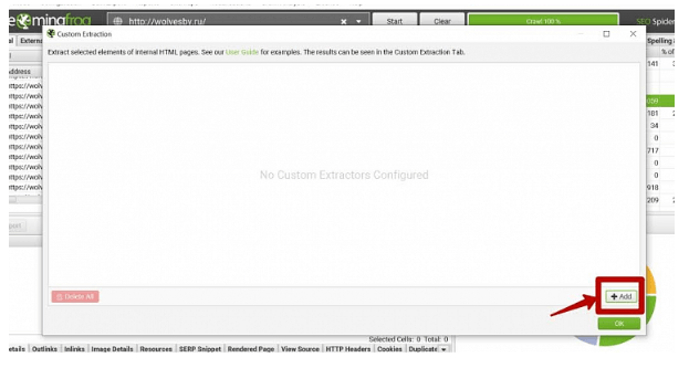 Нажмите кнопку "Add" для добавления нового пользовательского извлечения.