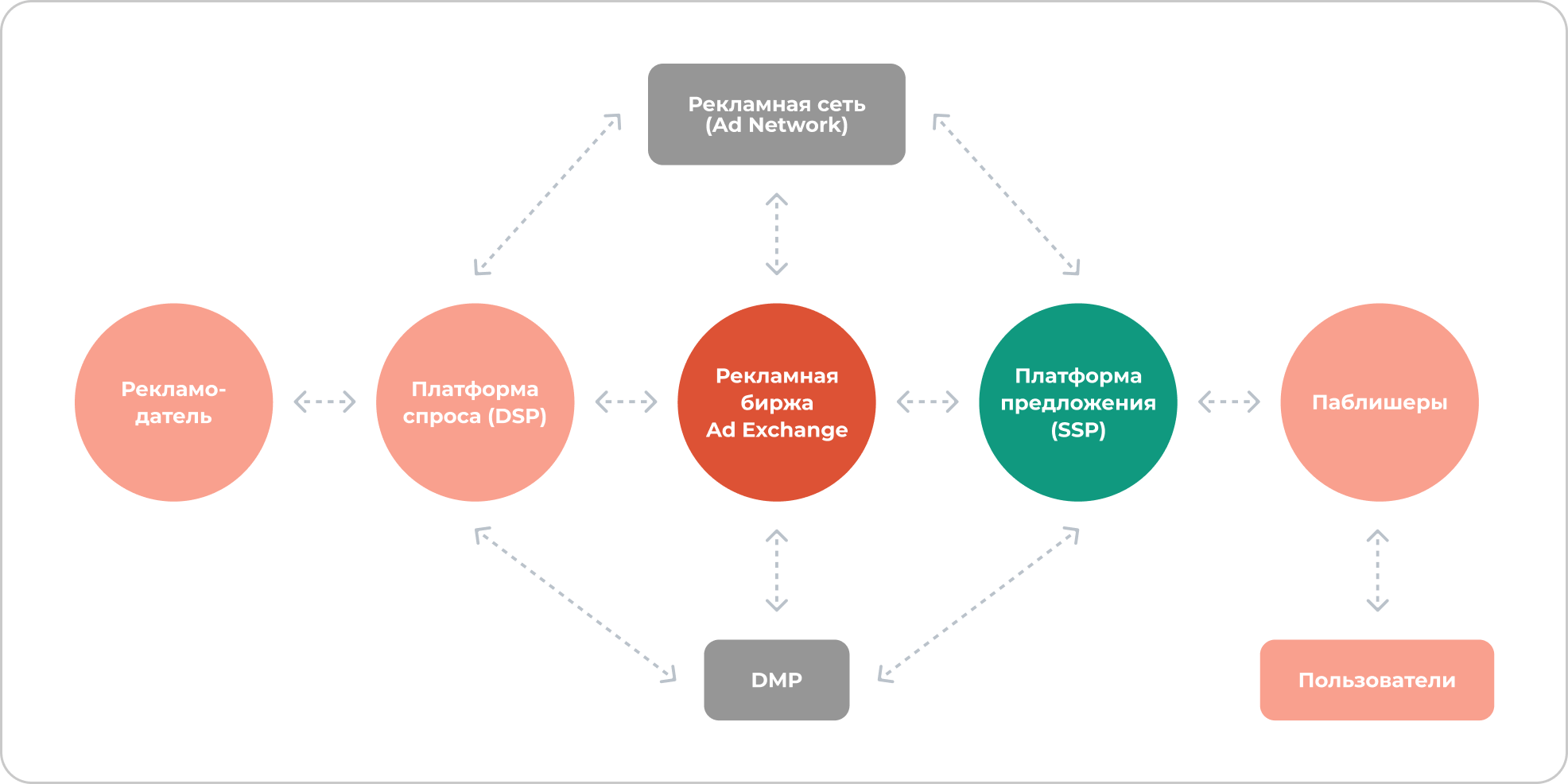 В экосистеме программатик-рекламы SSP взаимодействует с другими ключевыми компонентами: