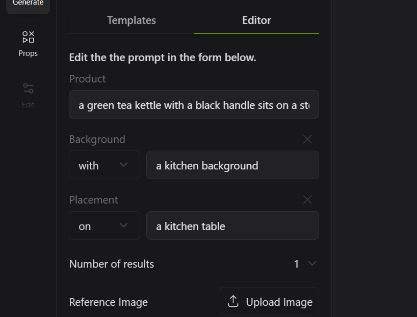 После добавьте промпт. Он должен включать описание фона (Background) и повехности, на которой будет стоять предмет (Placement). Вводить все нужно на английском. Если это проблема, просто прогоните текст через онлайн–переводчик