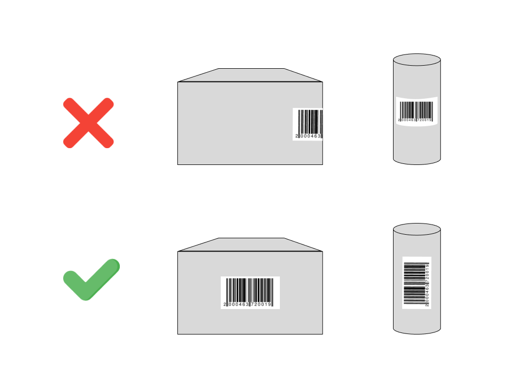 Наклейку нужно разместить так, чтобы избежать изгибов и заломов — из–за них штрих–код может не считаться