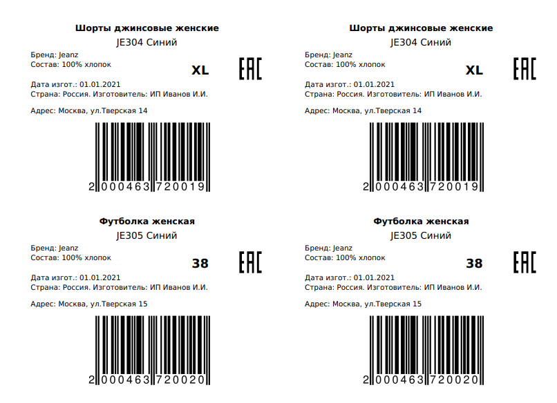 Этикетка клеится на сам товар или, например, на его бирку. На этикетке указывают название товара, артикул, размер, состав и другие сведения. Полный список необходимых данных ищите в законе «О защите прав потребителей».