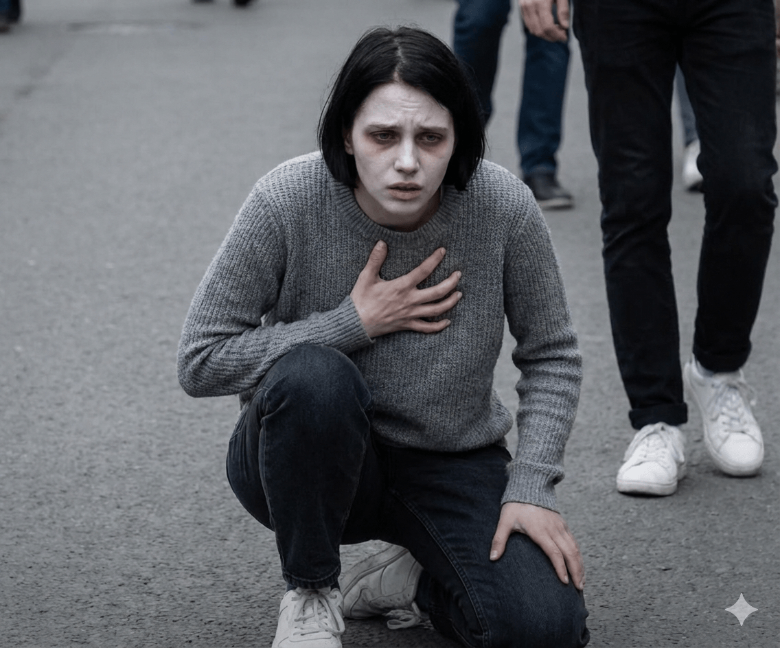И когда первая девушка сказала, что: "Я подойду, пошевелю его и спрошу, как у вас дела?". Я была уверена, что не надо человека трогать, мало ли какая у него травма, но что я по факту сделала? Кивнула.