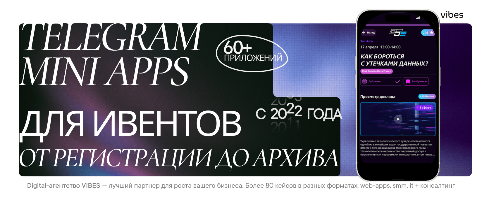 Кстати, недавно мы с командой собрали большой гайд по Telegram Mini Apps: как работают, преимущества перед сайтами и мобильными приложениями, а главное — пошаговое руководство по созданию.