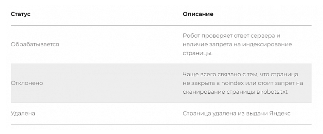 Удаление страницы не гарантирует, что Яндекс исключит её из поиска! Чтобы убедиться в том, что страницы больше нет в поисковой выдачи вернитесь в инструмент через 3-5 дней, чтобы изучить статусы.