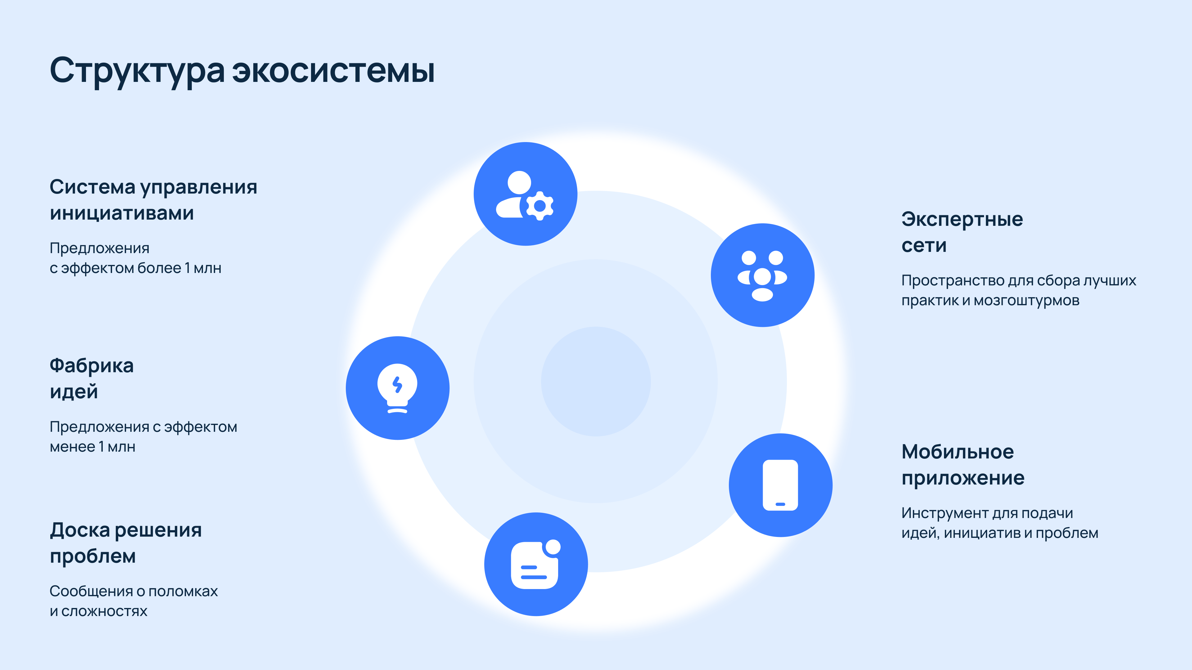 Например, мы создали экосистему управления улучшениями для крупного добывающего холдинга. В экосистеме 5 сервисов с разным функционалом.