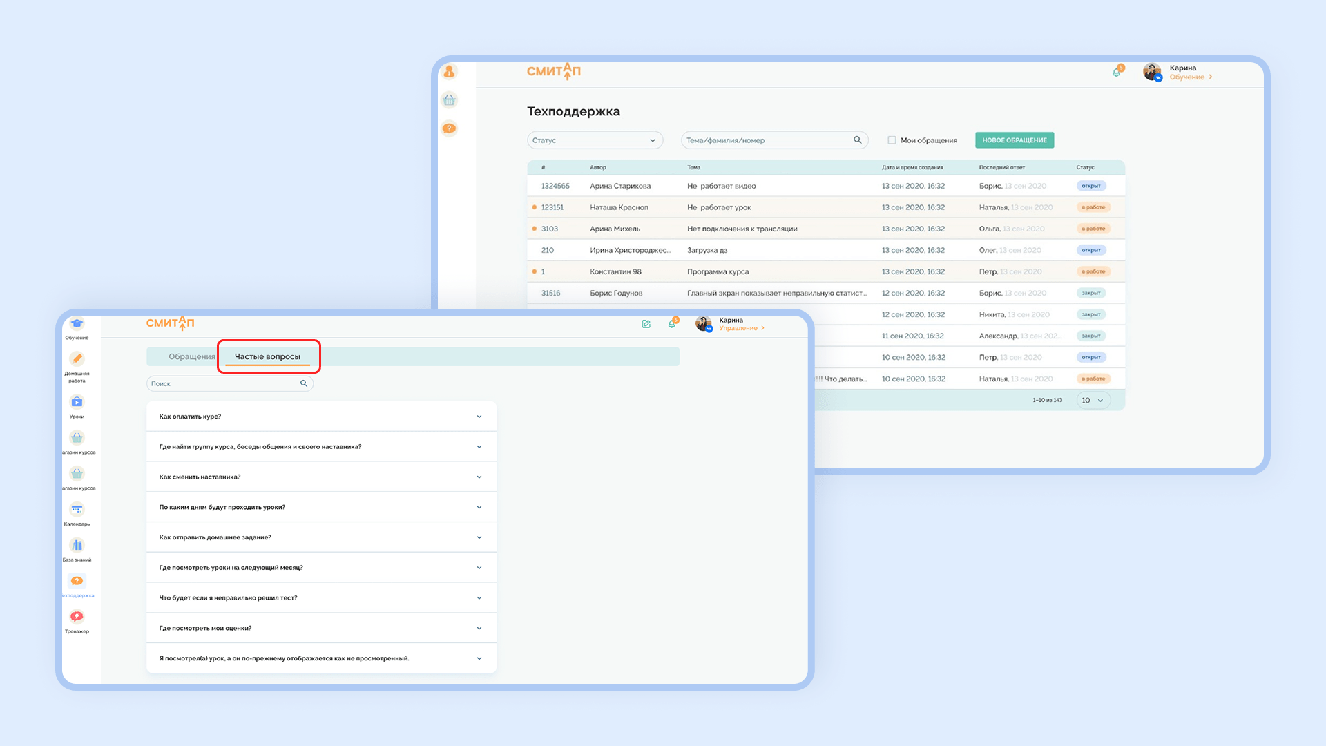 Например, образовательная платформа СМИТАП, которую мы создали для одноименной онлайн-школы. Мы постоянно обновляем сервис и добавляем новые функции, которые облегчают работу преподавателей, методистов и кураторов.