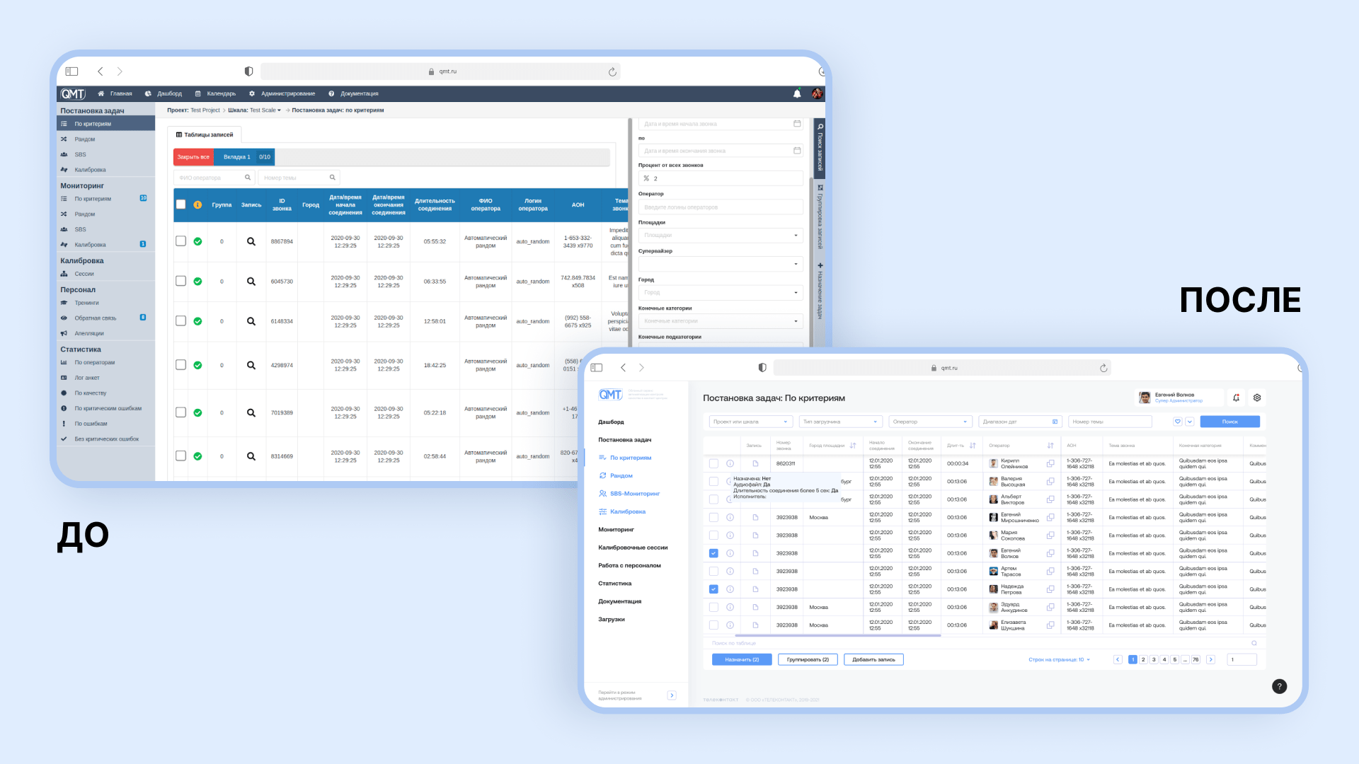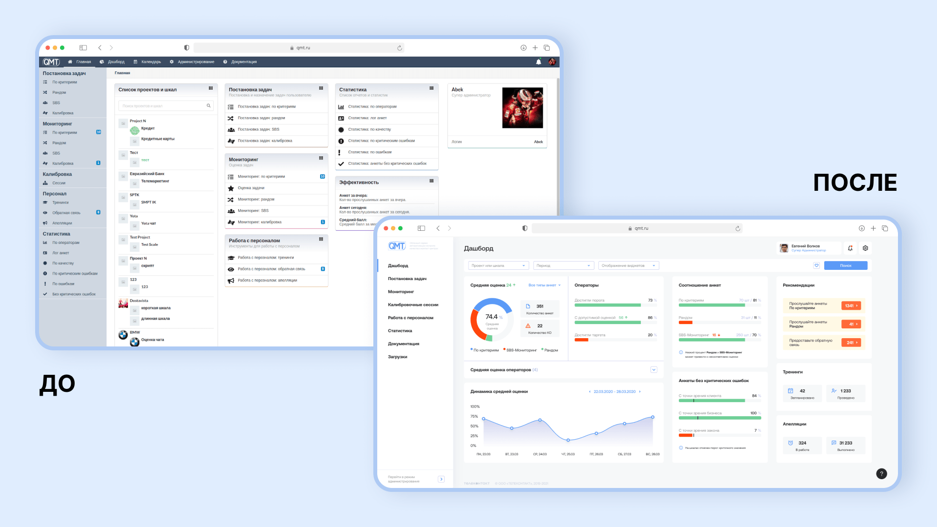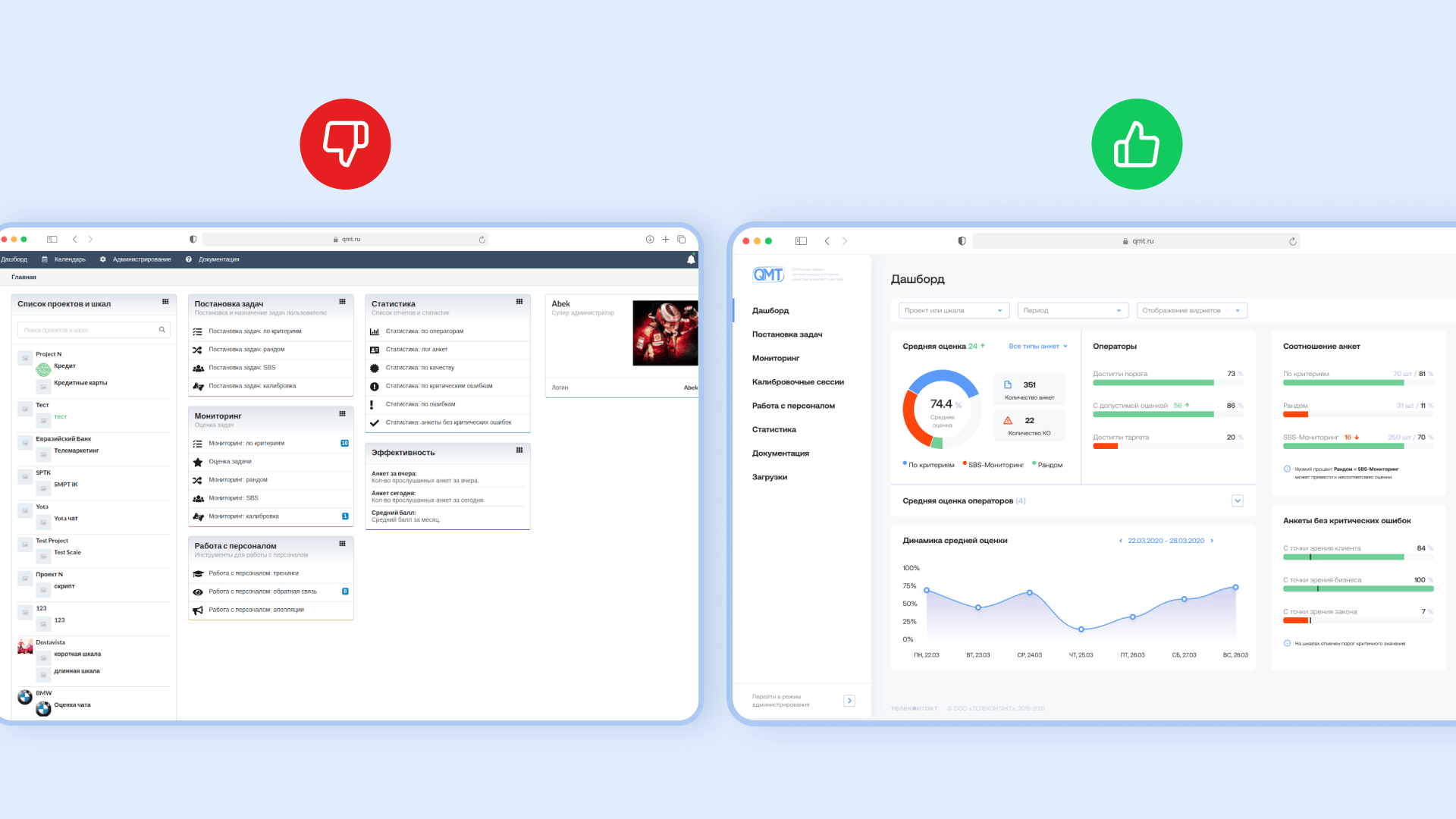 Разберем проблему на примере системы контроля качества звонков QMT, которую использует крупнейший аутсорсинговый колл-центр России «Телеконтакт». Для компании мы сделали редизайн сервиса.
