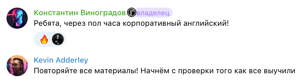Чтобы команда быстрее адаптировалась и развивалась на международном рынке, у нас в штате есть крутой корпоративный репетитор, приехавший в Таиланд из Штатов, который разработал курс под нужды @roobinium. Сотрудники регулярно практикуют разговорный и бизнес-английский, оттачивая грамматику и расширяя свой словарный запас, чтобы увереннее коммуницировать с заказчиками и партнерами.