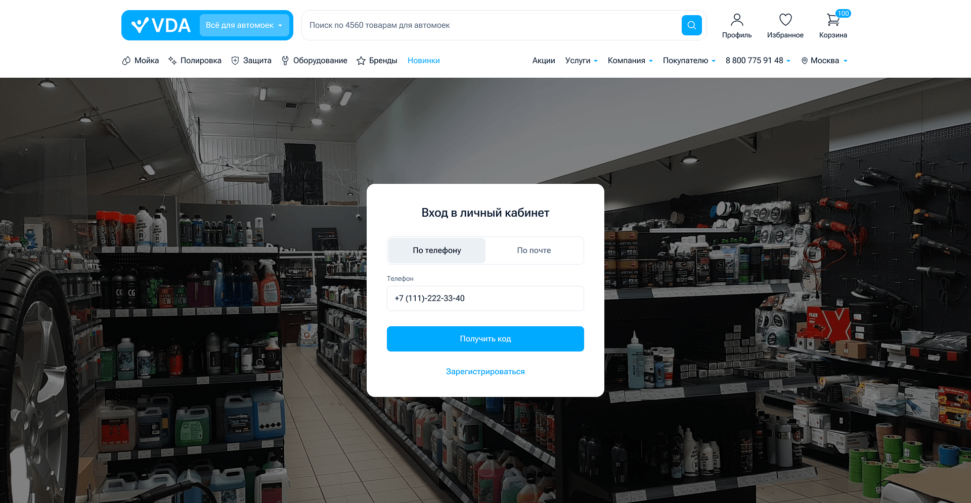 Авторизация через e-mail, соцсети или номер телефона.