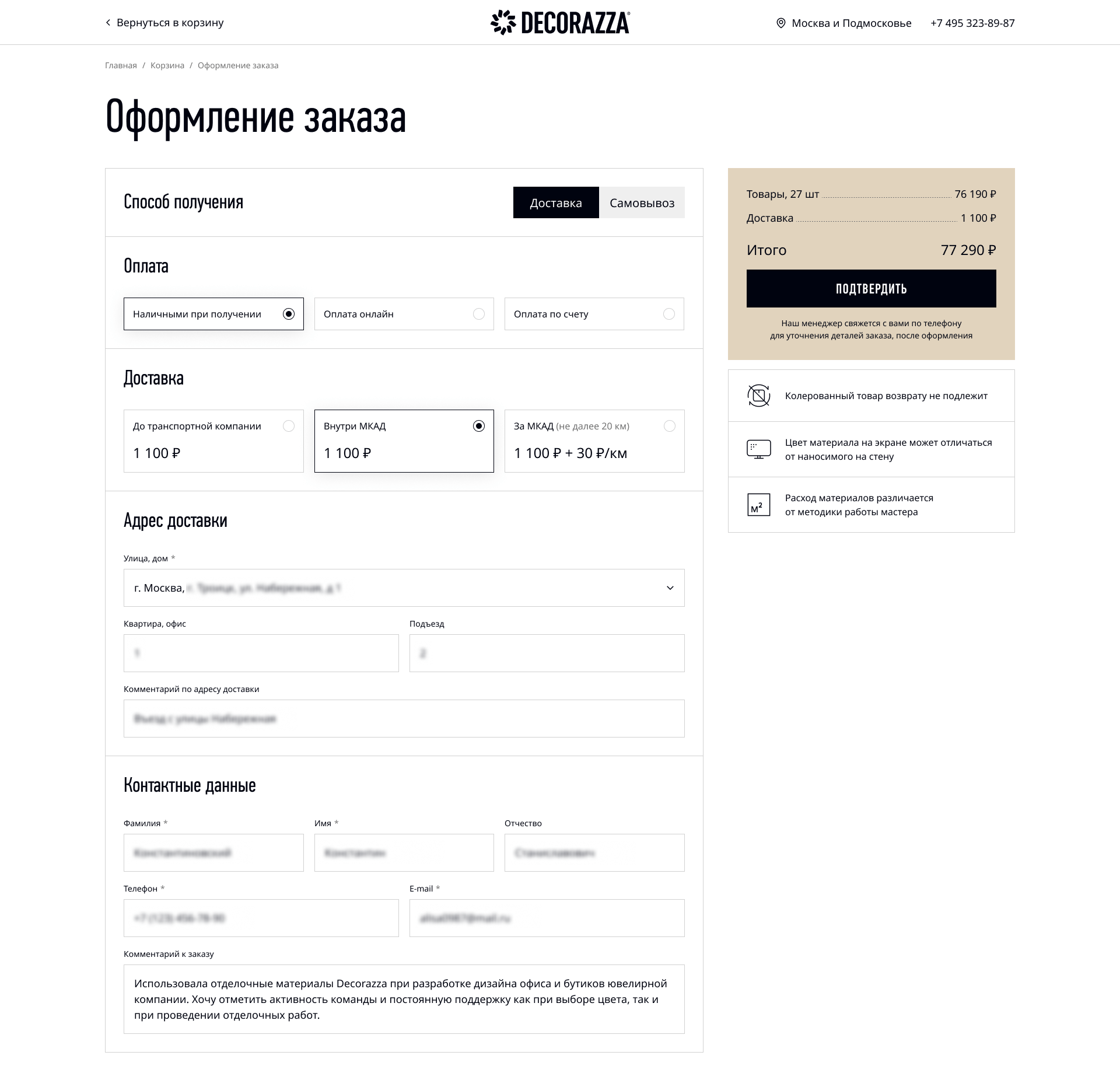 Дайте клиенту возможность быстро изменить количество товаров, удалить позиции или выбрать вариант доставки прямо в корзине без необходимости начинать процесс заново.