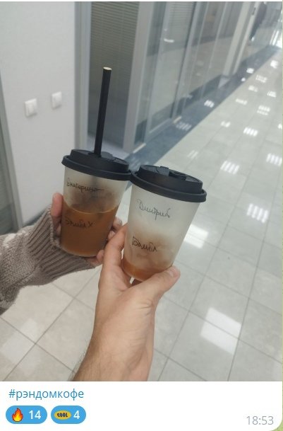 Наша любимая активность: в среднем около 30 человек из 100. Участвуют и джуны, и старшие специалисты, и руководители отделов, и фаундеры. Все активно делятся фотками или скринами со встреч random coffee.