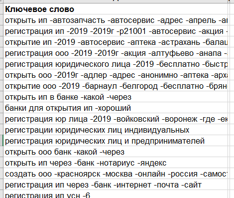 Когда мне нужно произвести какие-либо операции со списком ключевых слов (например, сгруппировать их по тематикам, проанализировать частотность использования и т.д.), нужно отделить ключи от минус-слов. Делать это вручную для больших списков очень трудозатратно.