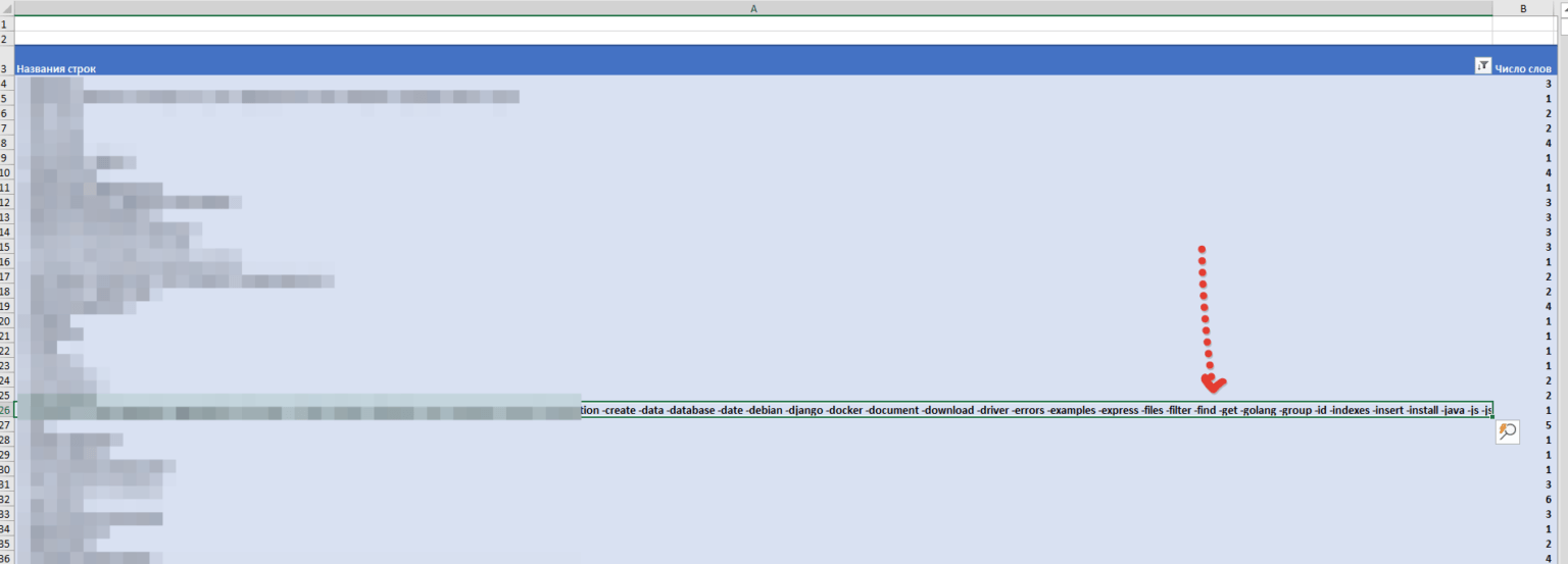 Бывает, когда в Excel длина значений, выводимых в строки, слишком большая и при обновлении отчёта, таблица автоматически расширяется и столбцы значений уходят за область видимости.