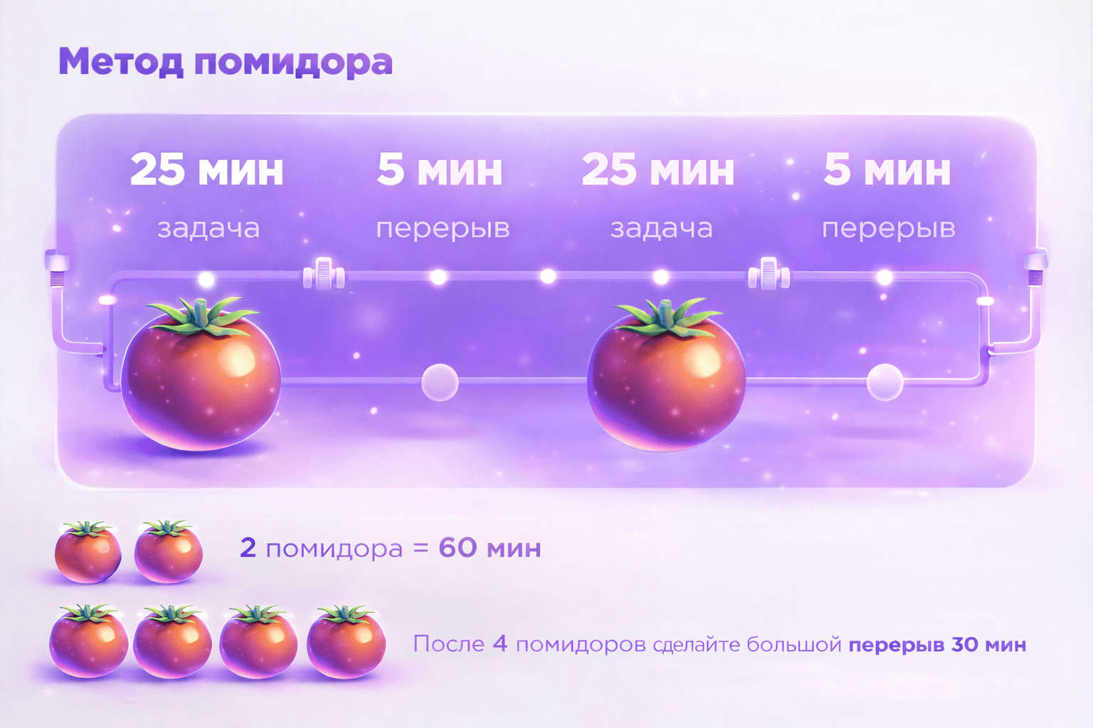 Здесь же можно использовать метод помидора (Pomodoro). Сейчас расскажем подробнее!