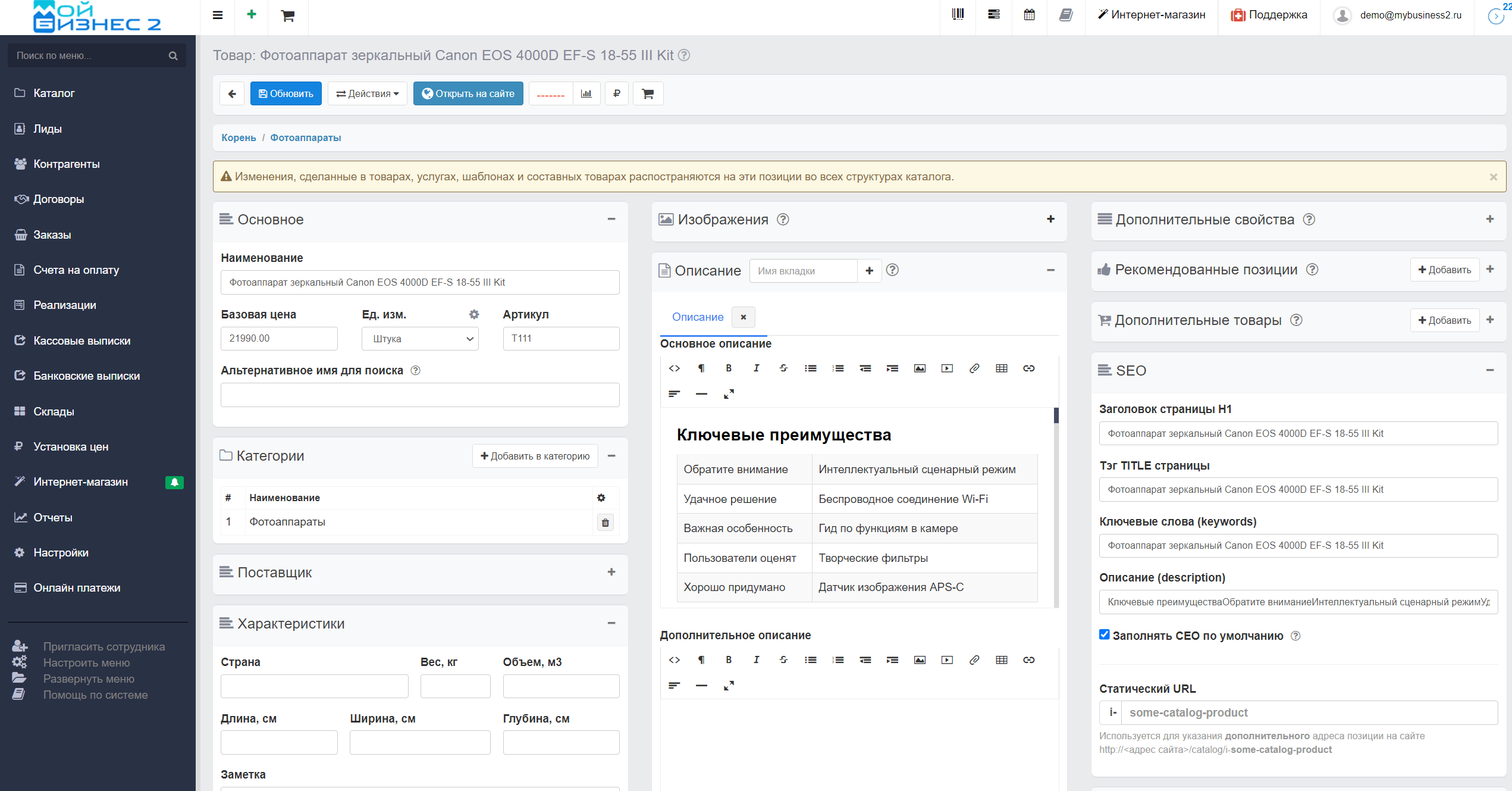 Товар - это та единица, которая непосредственно хранится на складе в определенном количестве. В МойБизнес2 товары находятся в каталоге. Подробнее о том, как наполнять каталог в МойБизнес2 можно ознакомиться в нашей статье.