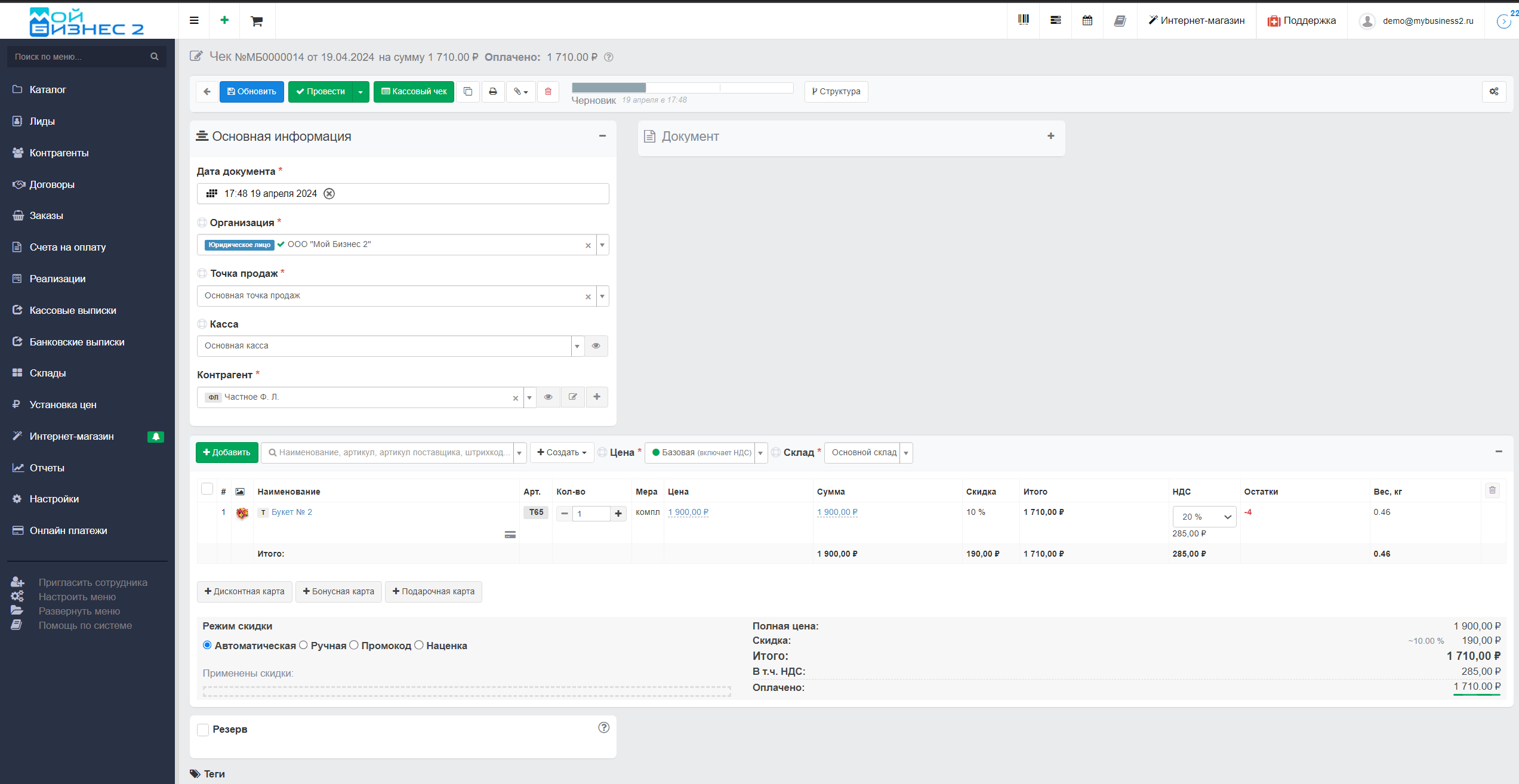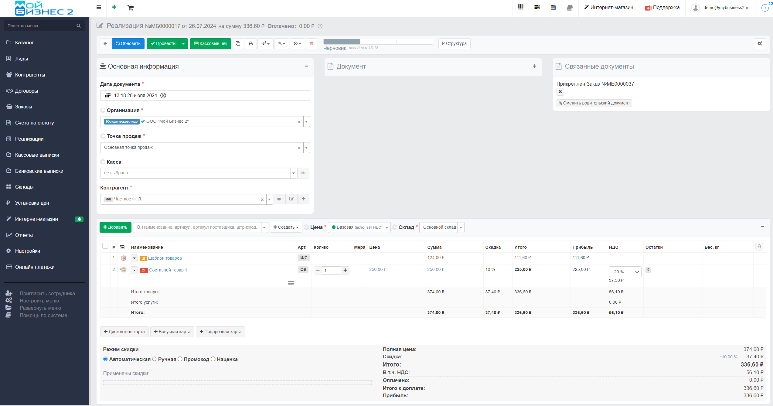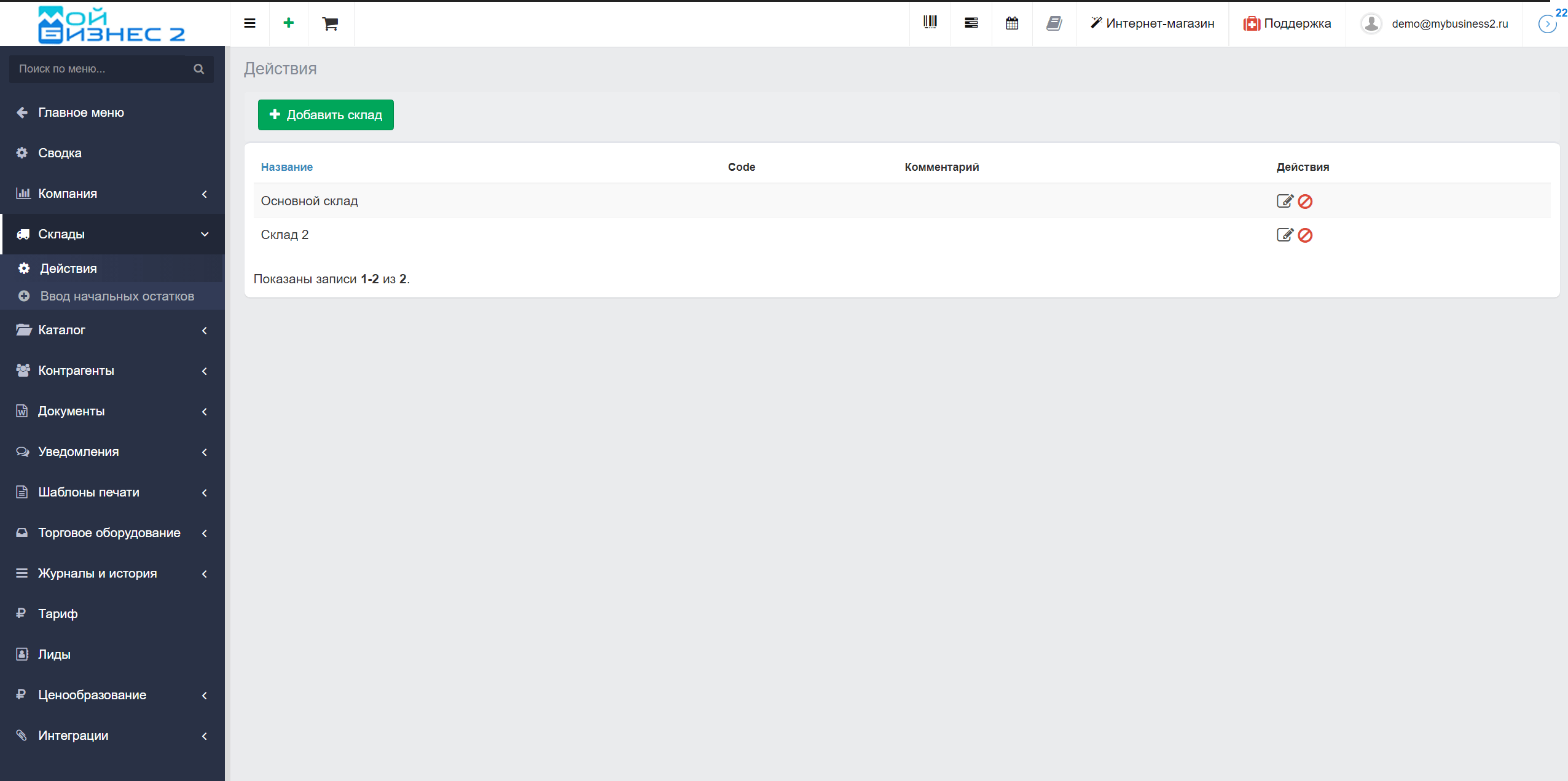 Вывод: таким образом, МойБизнес2 позволяет полноценно вести товарный учет, создавать склады и продавать товар.