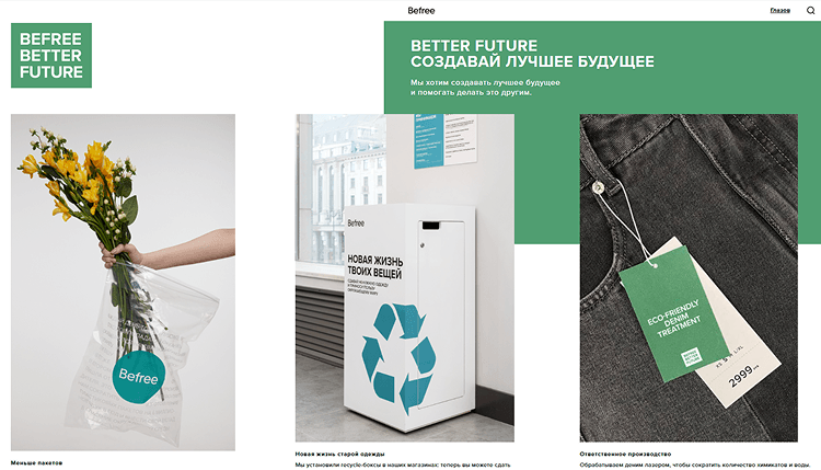 Ценностная программа лояльности фокусируется на нематериальных поощрениях. Бренд Befree предлагает скидки за сдачу одежды на переработку. Это стимулирует продажи и формирует ощущение причастности к экологичному потреблению.