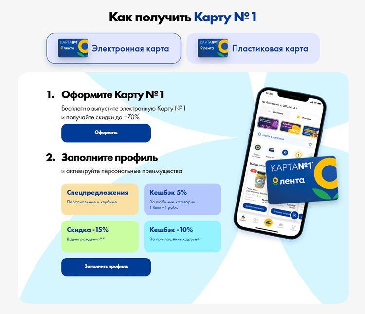 Покупатели получают фиксированные или накопительные скидки. Например, сеть гипермаркетов «Лента» предлагает программу «Лента.Клуб» с индивидуальными скидками.