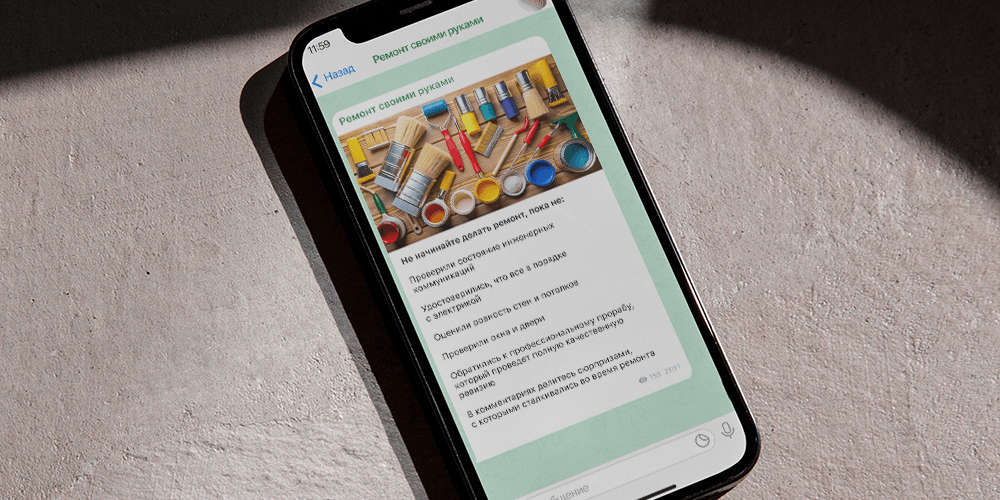 Например, если компания занимается ремонтами и хочет разместить рекламу в канале застройщика, можно сделать пост в виде полезного чек-листа перед ремонтом. Последним пунктом такого поста станет ссылка на сайт или канал компании ремонтов.