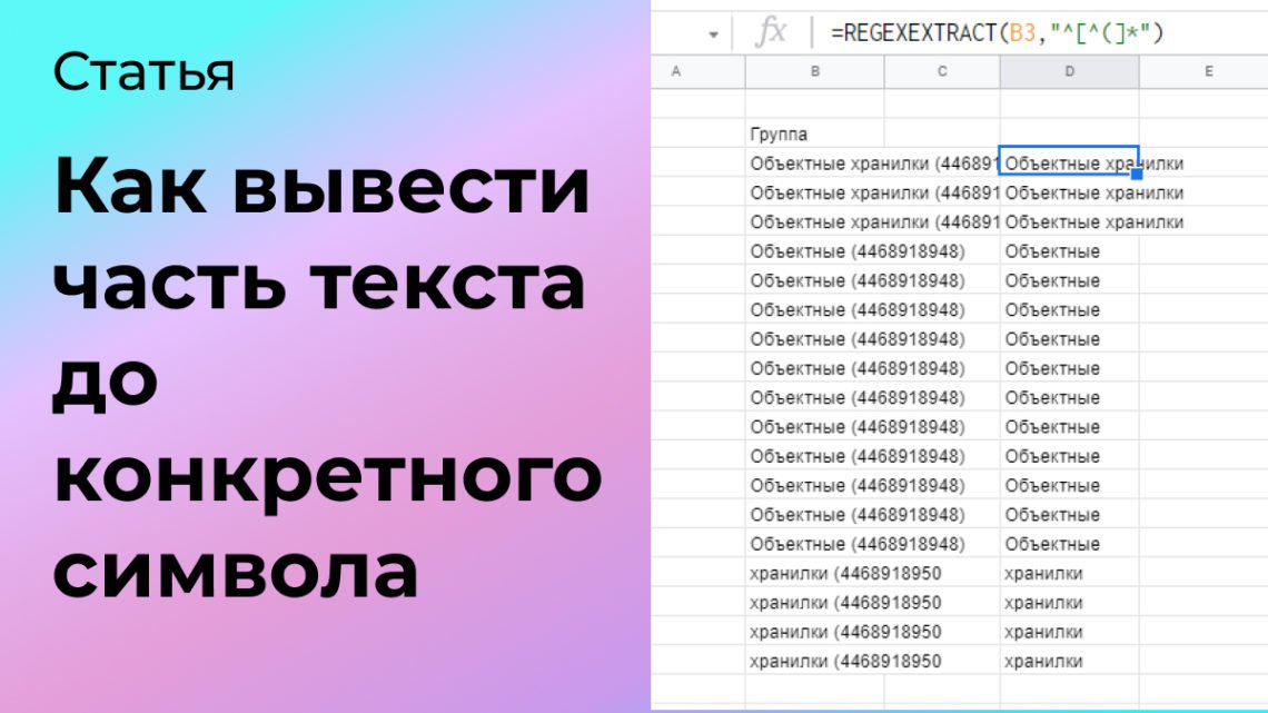Рассказываю, как с помощью регулярных выражений или просто Excel вывести часть текста до определенного символа или текста. Задача интересная и встречающаяся повсеместно.