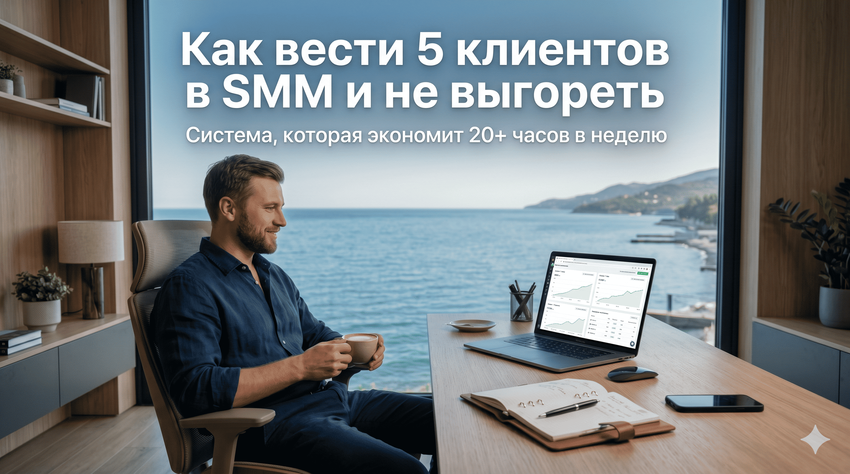 Четыре года назад я набрал пул из нескольких заказчиков и чуть не сошел с ума от перегруза. Я сидел за ноутбуком сутками напролет, пытаясь понять, как взять 5 клиентов на SMM и не выгореть в первый же месяц. Знакомый специалист тогда просил 60 тысяч рублей за ведение только одного проекта, и я жадно решил тянуть все сам. Я понял, что набрать проекты легко, а вот удержать их без четкой автоматизации просто невозможно. Ниже расскажу про ведение нескольких проектов простым языком. Без воды, опираясь на свои 10 лет практики. Вы узнаете: как выстроить систему работы, почему ручной труд убивает профит, где брать крутые идеи для постов и как делегировать контент нейросетям.